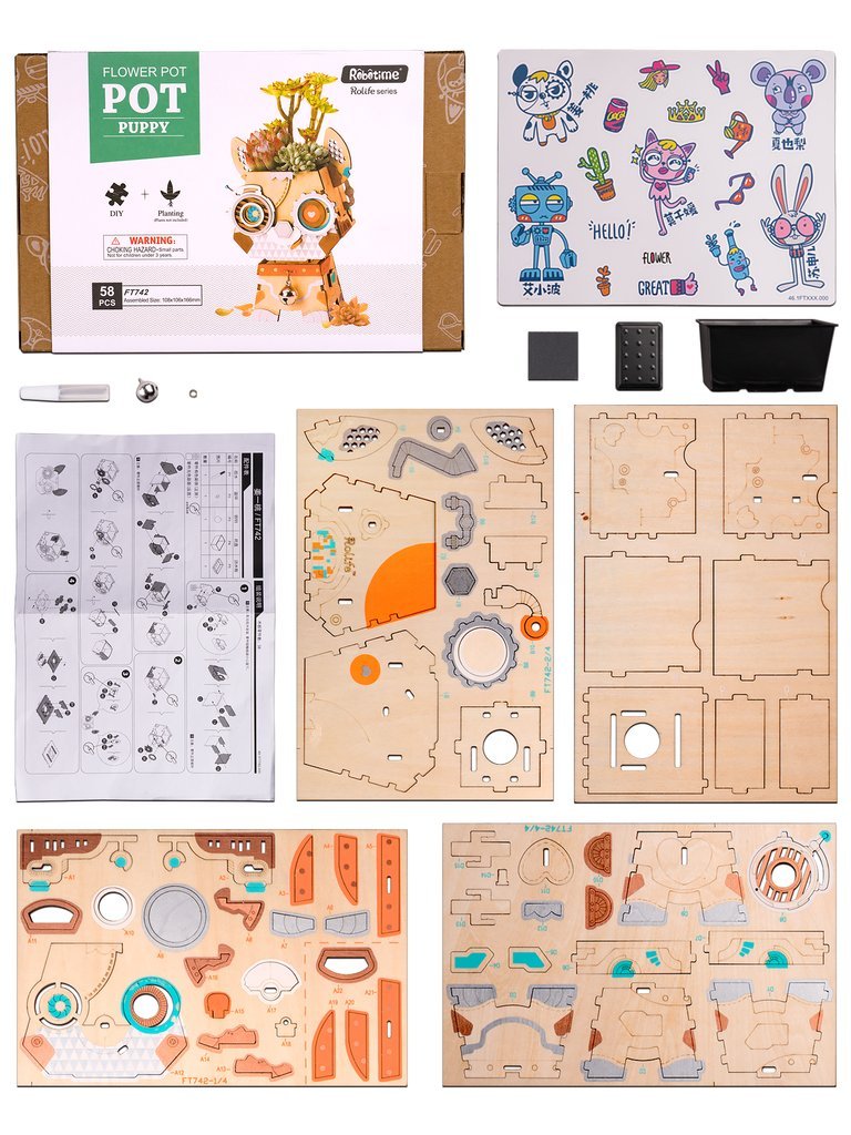 Robotime DIY 3D Wooden Puzzle Plant Pot Puppy