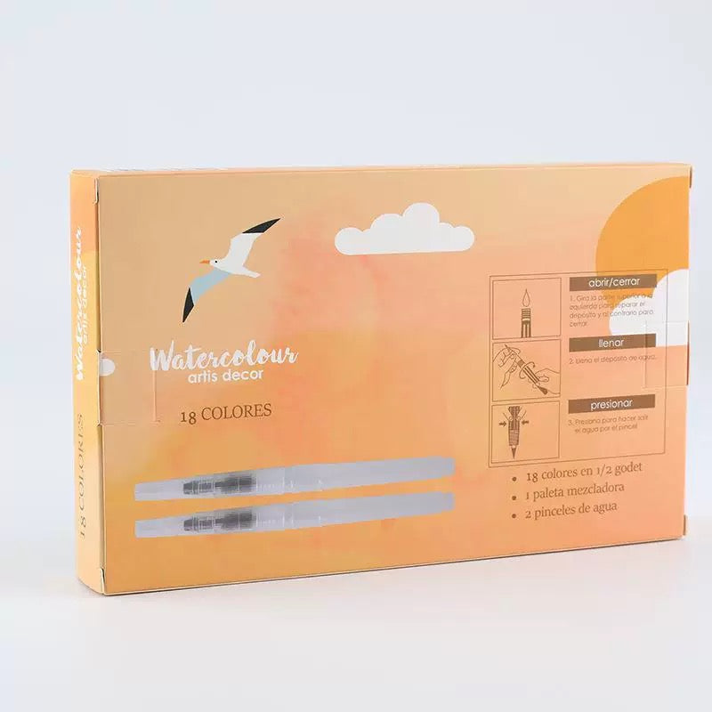 Watercolour Paint Set – 18 Vibrant Colours with Palette & Water Brush Pens