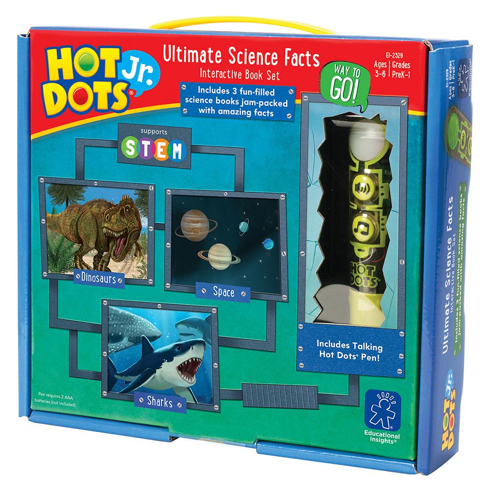 Uncover some truly fascinating scientific facts and encourage an early interest in science with three fully-illustrated, interactive, non-fiction books-Dinosaurs, Sharks, and Space. Also includes the Hot Dots(R) Talking Pen with a cool, translucent look!