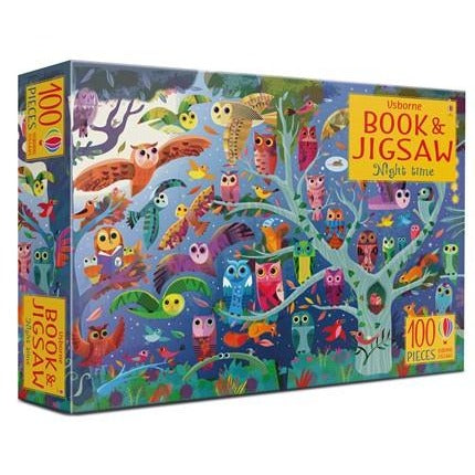 A brilliantly colourful 100-piece jigsaw showing a busy night time scene, plus a 24-page picture puzzle book presented together in a sturdy box. The jigsaw measures 59x40cm and both the jigsaw and book are illustrated by Gareth Lucas. Can you find a leopard who's lost her spots, an owl reading a bedtime story, a bat wearing socks and lots more?
