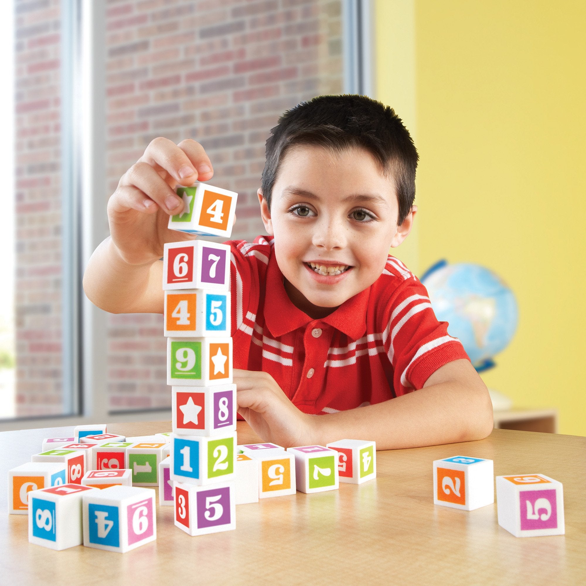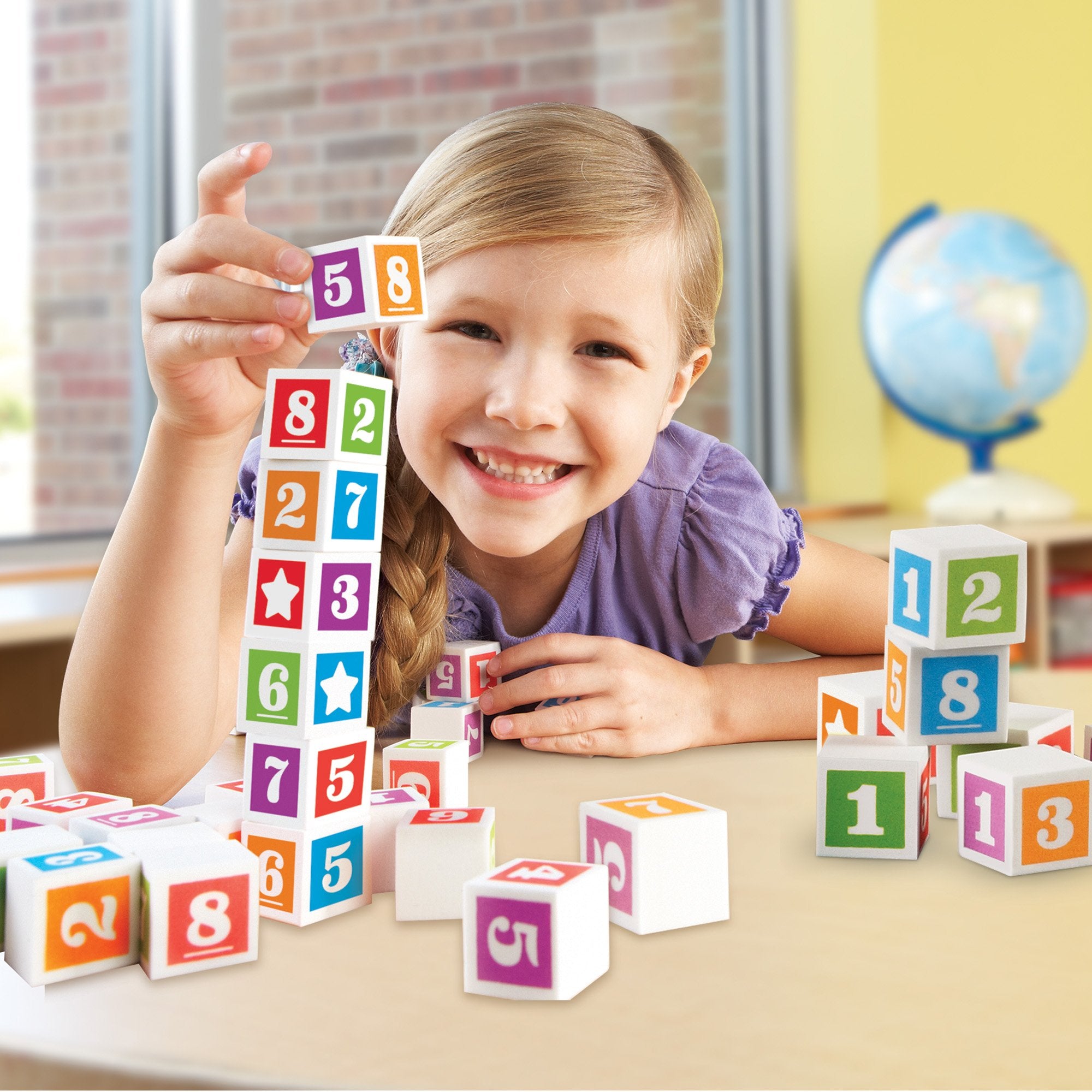 It's a game of quick thinking and steady hands. How high can you go? Stack all of your cubes first, and win! Includes 30 durable, soft foam cubes for easy stacking and quiet game play.