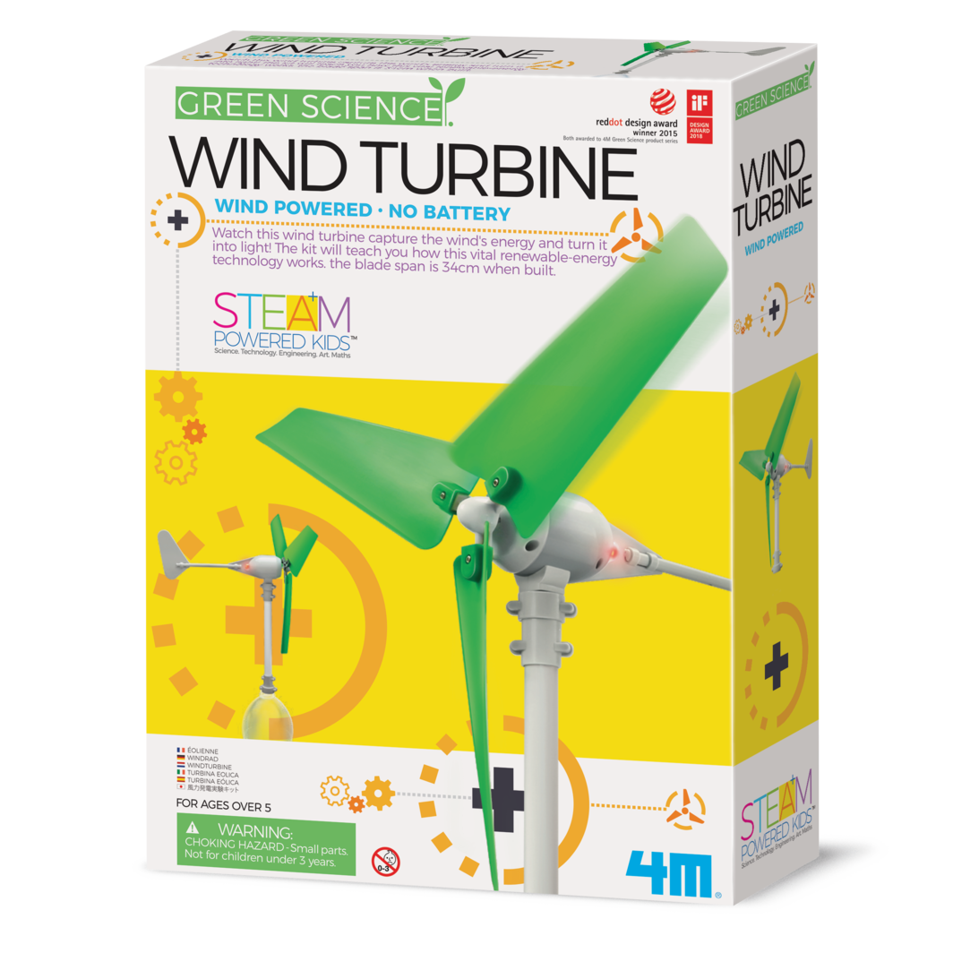 Watch this wind turbine capture the wind's energy and turn it into light! The kit will teach you how this vital renewable-energy technology works. The blade span is 34cm when built.