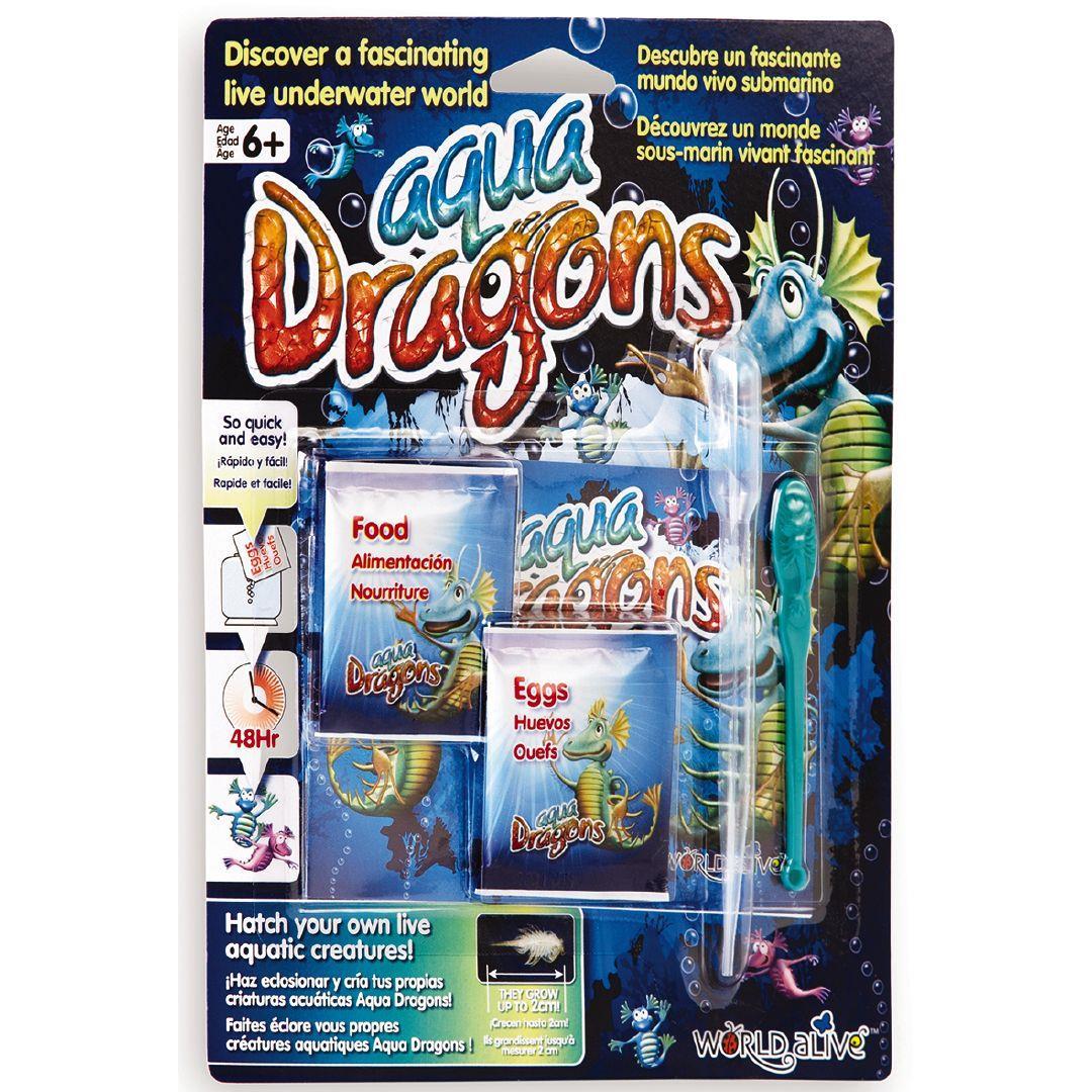 This Aqua Dragons Refill Kit includes eggs and food packets, feeding spoon, aerator, instructions and activity book. Use your own tank (400ml) to hatch & grow generations of these tiny live time travellers.