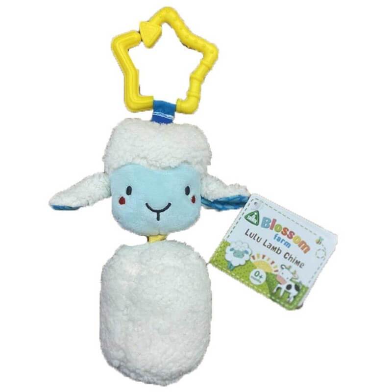 Jingling woolly lamb soft toy with c-clip for on the go discovery Set contains: 1 x Blossom Farm Lulu Lamb Chime Great for stimulating senses and sound recognition Ages 0+