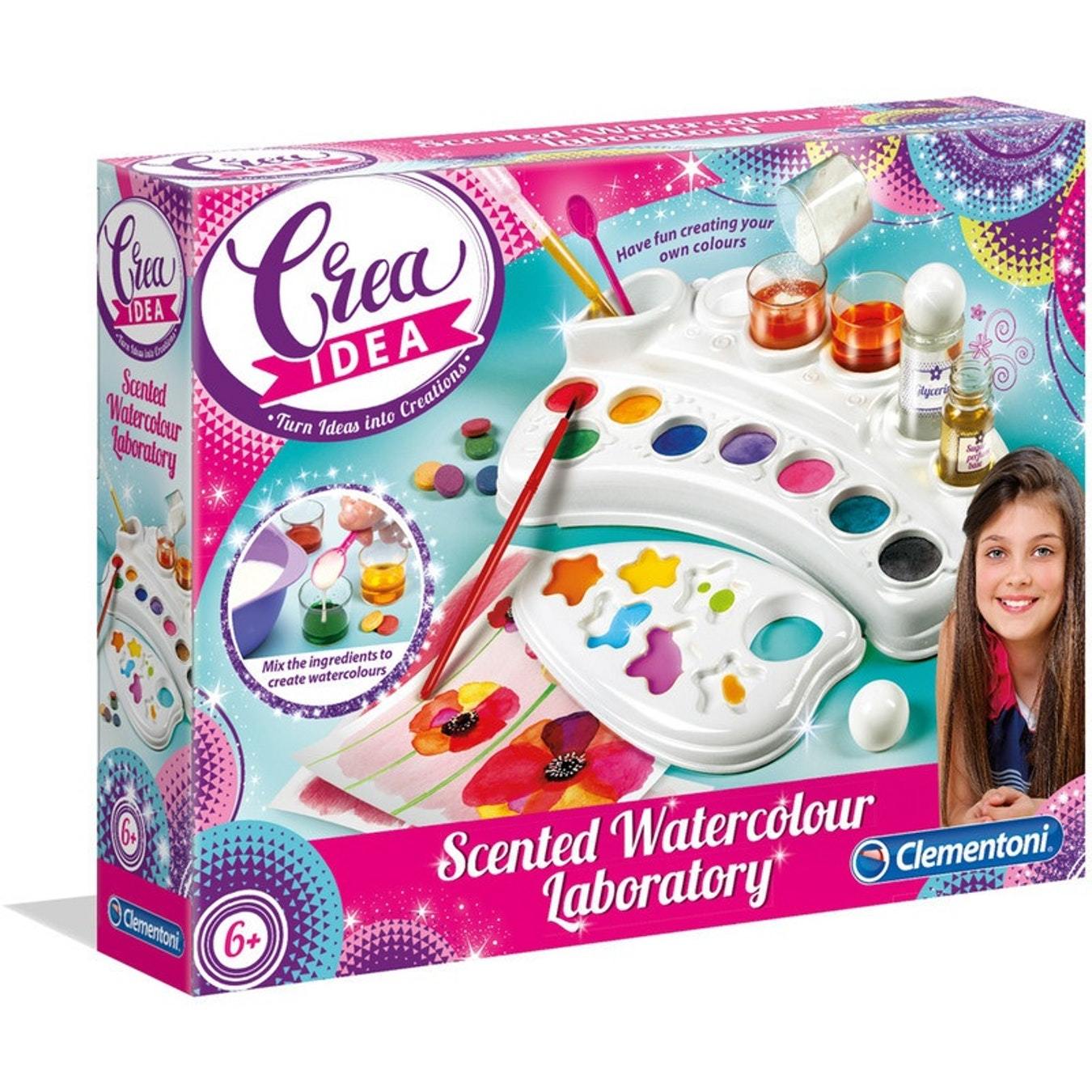 The kit includes a neutral base, colours and perfumed essences to make brightly coloured and delicately perfumed water colour tablets for enjoyment and experimenting with all the painting techniques.