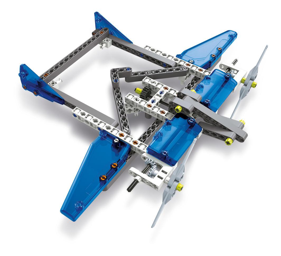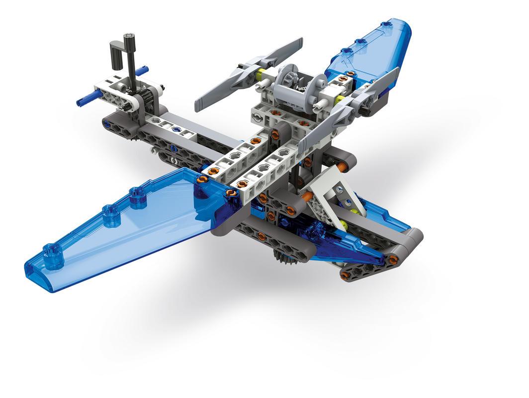 A scientific kit for discovering and experimenting with the mechanics of flight. With 10 models and 200 components to assemble, including: rods for assembling the nacelles, panels, propellers, cogs, pulleys and universal joints.