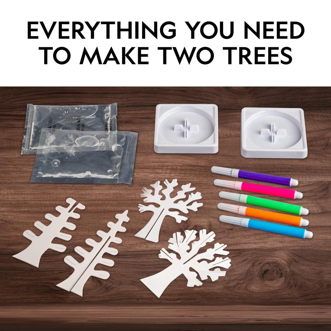 This science kit includes crystal growing solution, two cardboard trees, base platform, broken geode specimen, National Geographic’s Learning Guide, and instructions.
