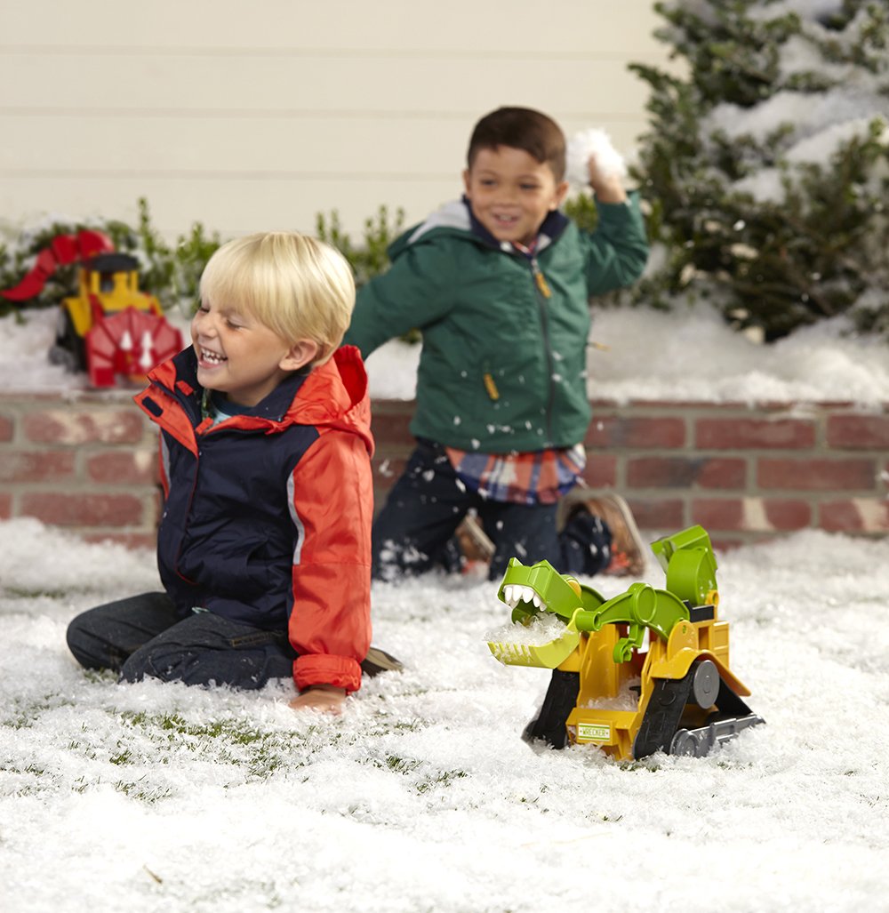 Roar! This fierce prehistoric powerhouse is the leader of the pack. From playroom to the beach, T-Rex Wrecker is ready for building and bashing anything, anywhere! Part dino, part construction vehicle, there's no project too tough for the Dino Construction Company!