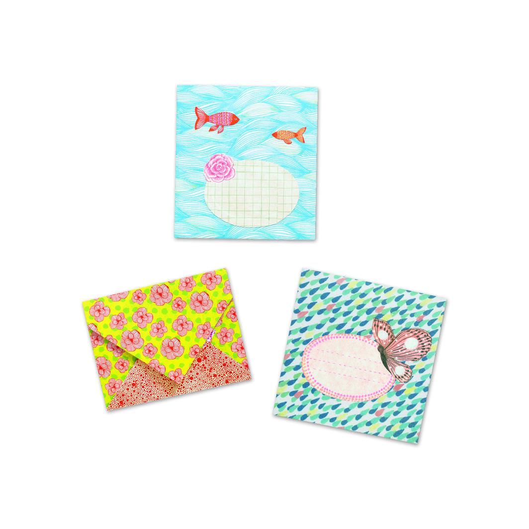 4 models of envelopes to make in pretty matching papers along with stickers to personalize them.