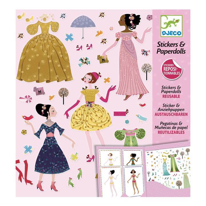 From flowing summer dresses, to dark winter fashion, you'll find a style for every season. This Djeco childrens activity kit contains 8 paper dolls to dress and 4 sheets of re-useable stickers of delightful outfits for all seasons.