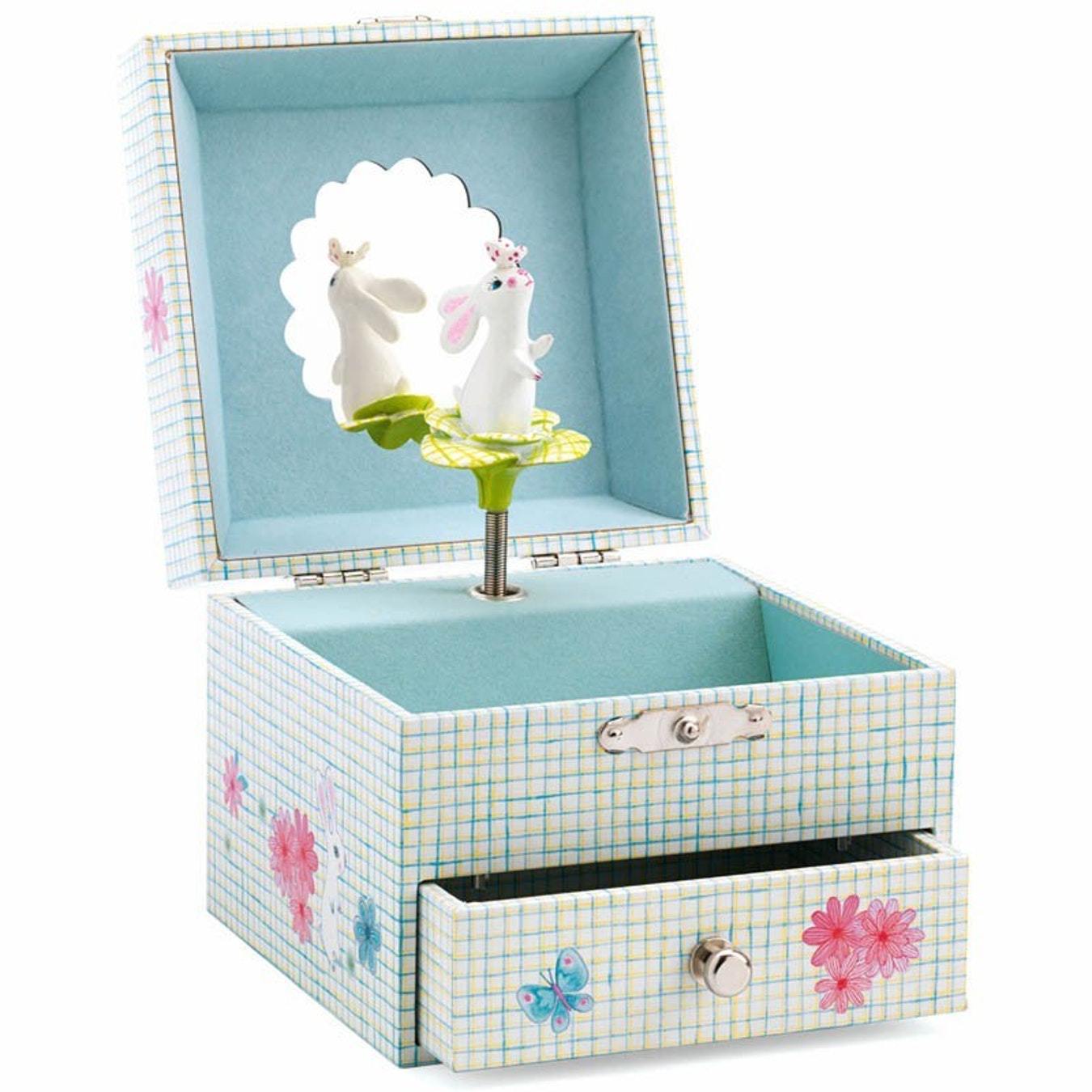 Perfect for storing your precious jewels, this beautifully designed musical jewellery box from Djeco with a rabbit theme features a beautiful white rabbit with a butterfly on her nose turning around...