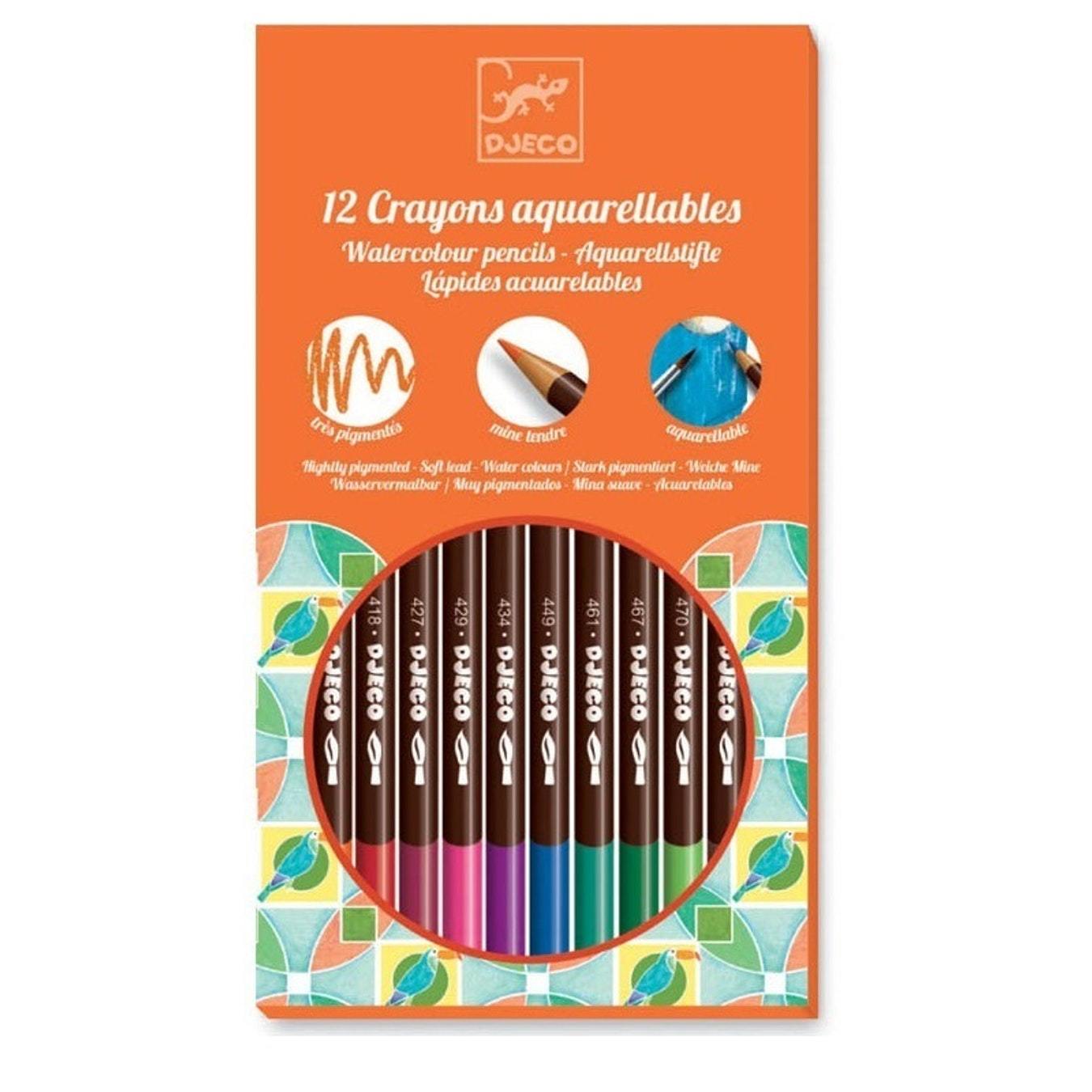 These Djeco watercolour pencils with strong, vibrant colours give great results on their own but when used with a brush and water brush they turn into watercolour paints. Twelve watercolour crayons...