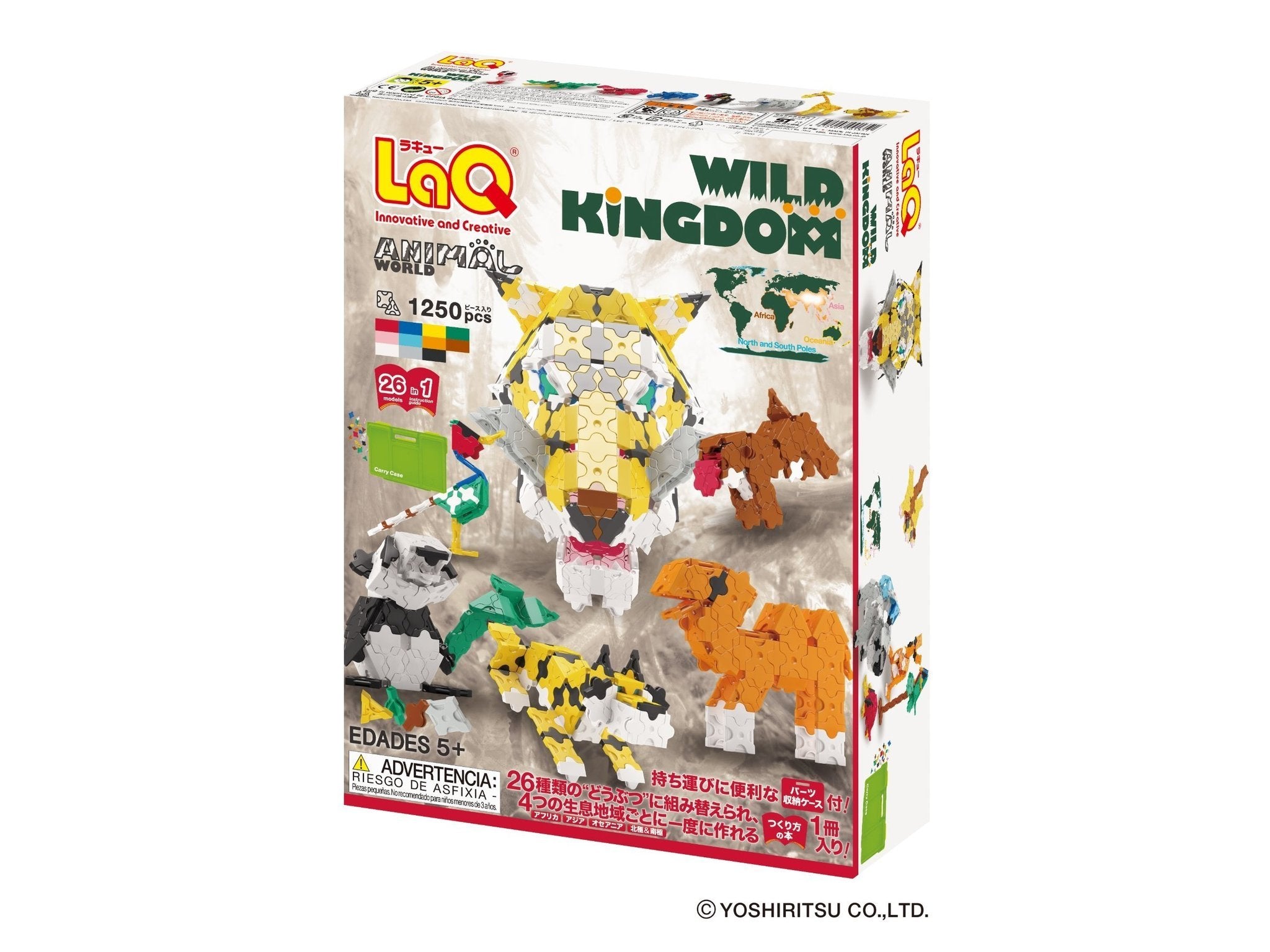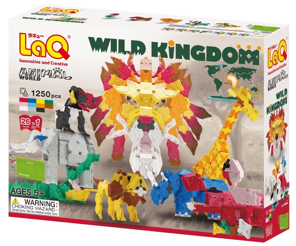 - This large set includes 1250 pieces across all 12 LaQ colours, a plastic carry case for easy storage and comes with a booklet of instructions to make 26 models - a very cool Lion Mask, Tiger Mask and animal groups from Africa, Asia, Oceania, the North and South Pole areas.