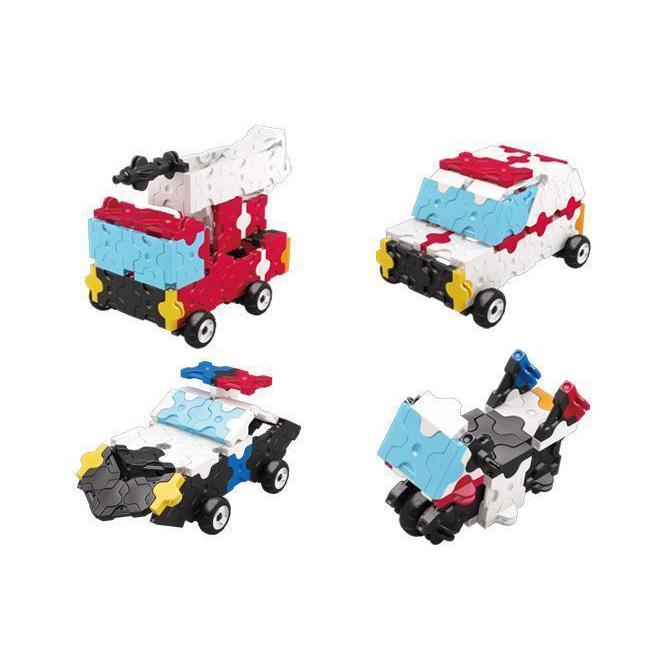 • This set includes an instruction guide to make 4 models including the Fire Truck with movable ladder, Ambulance, Police Car and a Police Motorcycle.