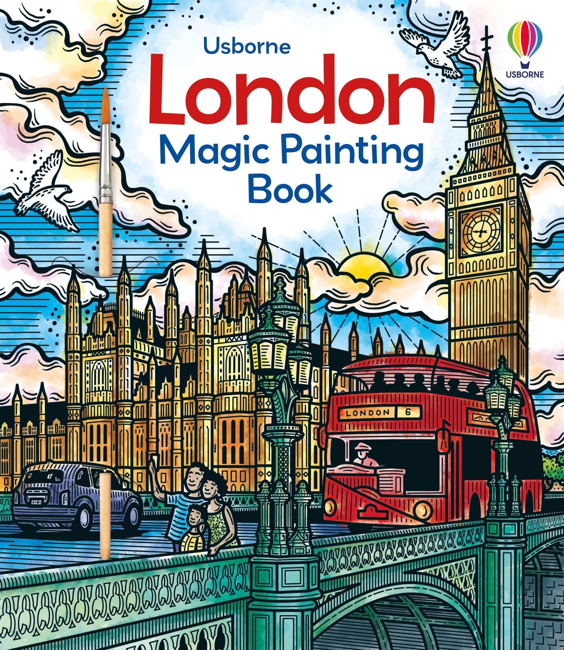Filled with the capital's icons, from Trafalgar Square to Tower Bridge and pillar boxes to pigeons. Use the brush provided to sweep water over the designs and vibrant colours magically appear! A perfect travel companion and a mess-free way to keep children busy. Simply tuck the waterproof back flap under each page as it's painted, to stop water from seeping through to the rest of the book. Landmarks included are: Big Ben and the Houses of Parliament, Tower Bridge, St Paul's Cathedral, Horse Guards Parade, Borough Market, the Shard, the Tower of London, St James's Park, Buckingham Palace, the Mall, Chinatown, Shakespeare's Globe, Kew Gardens, Trafalgar Square, the National Gallery, Piccadilly Circus, the London Eye, County Hall and Westminster Bridge.