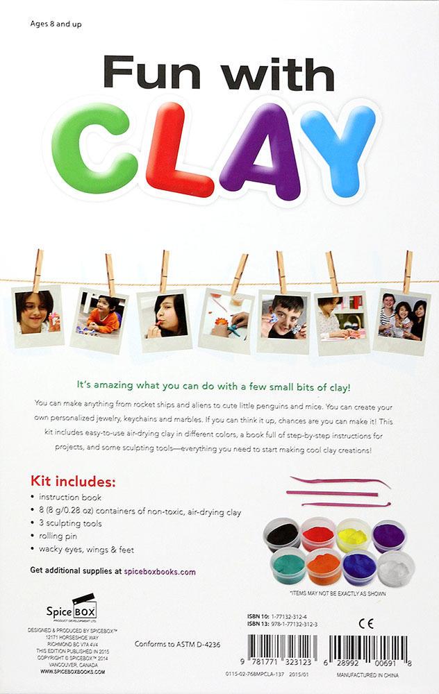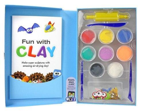It's amazing what you can do with a few small bits of clay! You can make anything from rocket ships and aliens to cute little penguins and mice. You can create your own personalized jewelry, key-chains and marbles. If you can think it up, chances are you can make it! This kit includes easy-to-use air drying clay in different colors, A book full of step-by-step instructions for projects, and some sculpting tools. Everything you need to start making cool clay creations. The Fun With Clay Kit Includes:
