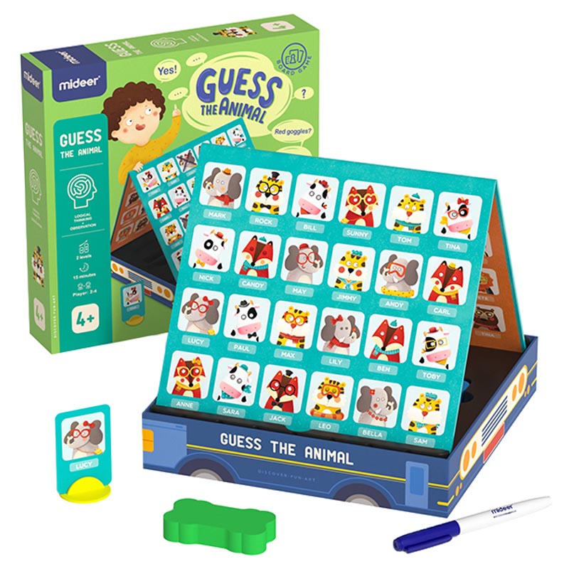 Guess the Animal is a fun and educational, involving use of reasoning skills. This set includes 48 animal cards, 2 erasers, 2 plastic holders, 2 markers and 1 game board (foldable). Kids need to take a close look at each animal, spot the differences and try their best to exclude more unrelated animals at a time, which will help to develop their observation; then they work to guess the animal on the other player’s card correctly, which will cultivate their reasoning skills.
