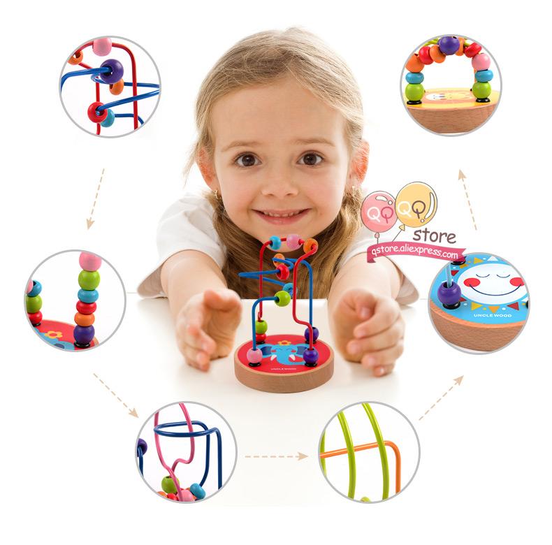 • 12 colorful wooden beads to spin and slide