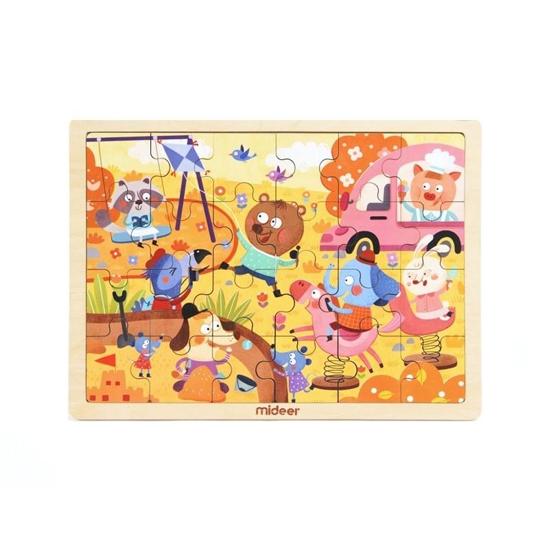 Mideer Wooden Puzzle-Happy Holiday Includes a 24-piece puzzle perfect for beginners. When finished, it can be put on the rack as a fancy and warm artwork. Each piece of the puzzle...