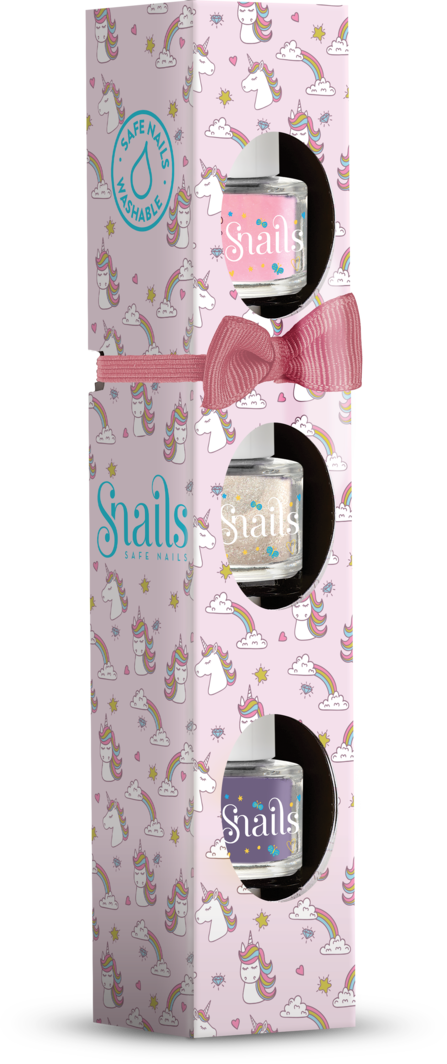 The Washable Snails Mini 3 Pack Nail Polish Pack Unicorn comes in mini travel sizes (7ml), in 3 loving colours.