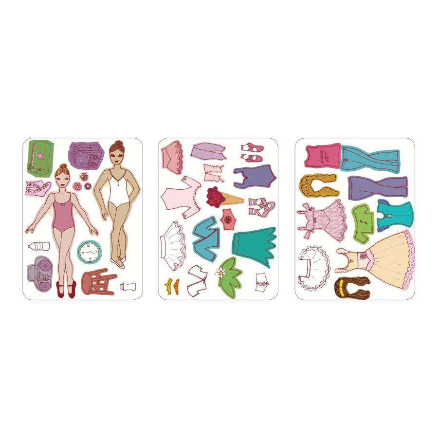 - 3 sheets of magnets include dolls, clothes, and accessories