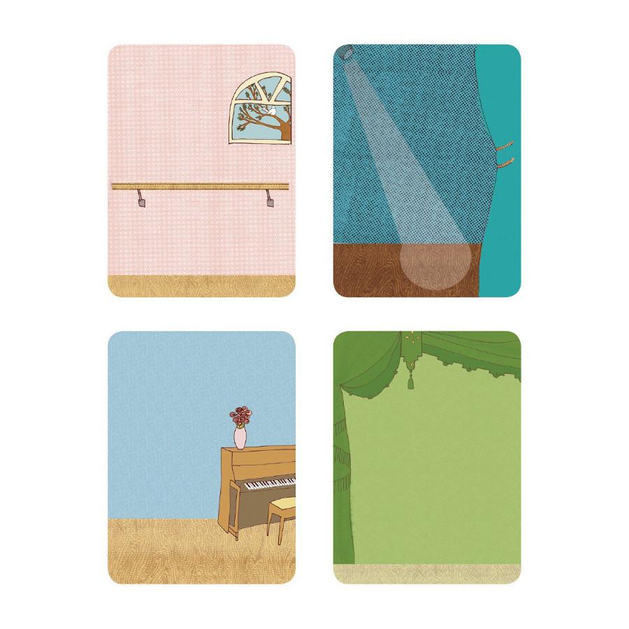 - 2 two-sided cards provide background images