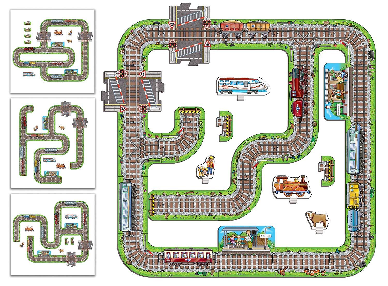 Design lots of different track layouts using 26 chunky, interchangeable jigsaw pieces, then add to the fun and play value with children's own toy trains and wooden track pieces.