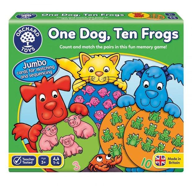 One Dog, Ten Frogs can be played as a single person pairing activity or a multi-player game.