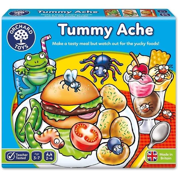 A hilarious game for all the family. Try to put together an edible meal on your place setting, but beware of making yucky combinations that will cause a tummy ache! Players take it in turns to pick up food and drink cards from the central pile and place them on the different sections of their plate. If they pick up one of the yucky 'tummy ache' cards they must shout out 'Tummy ache!' and place it on their board to be replaced later in the game. The winner is the first player to build a complete meal on their board.