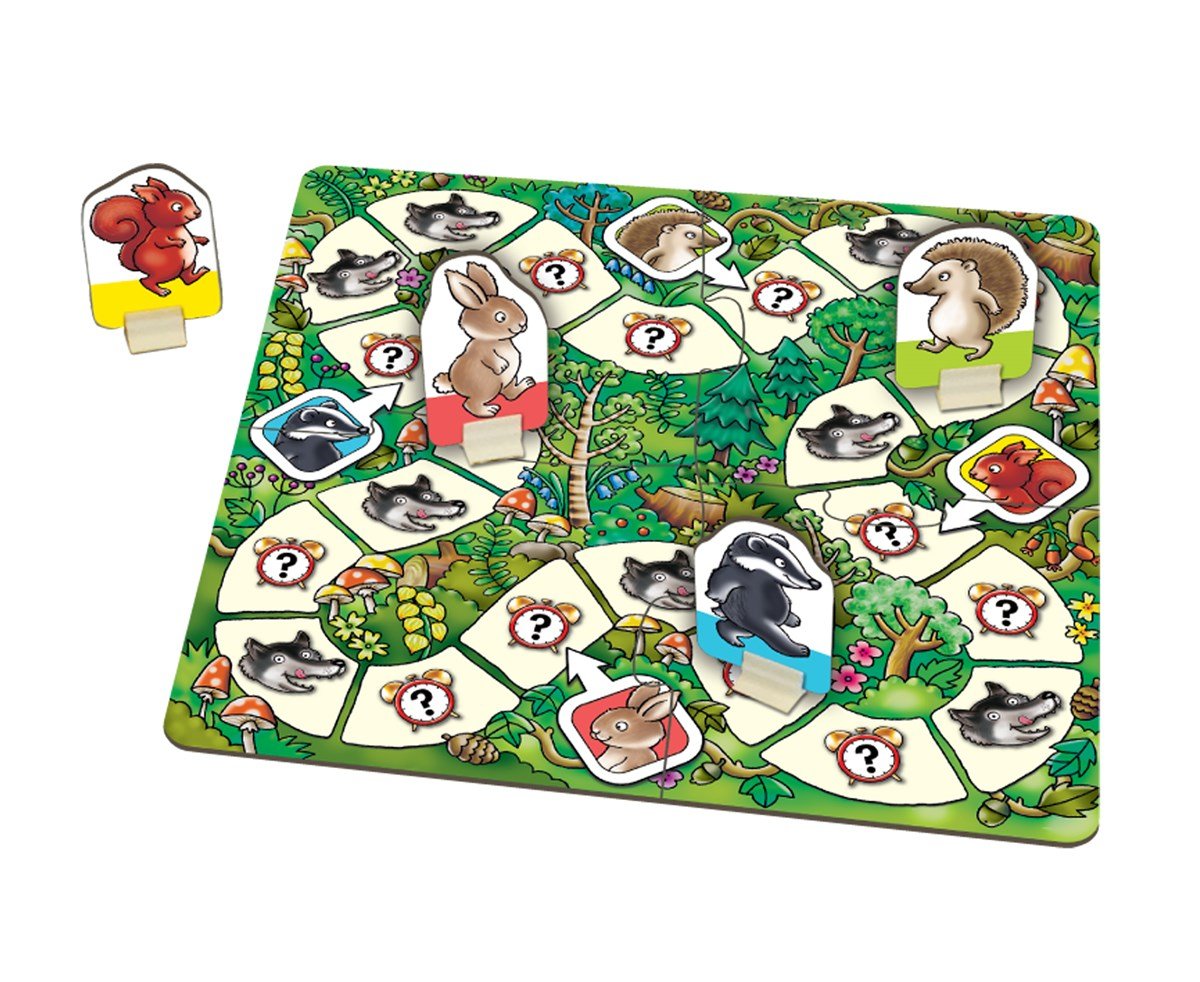 - 1 jigged forest playing board, 20 double sided square cards,4 jigged double sided collection boards