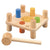 A four-hole wooden board with a wooden mallet for hammering practise.