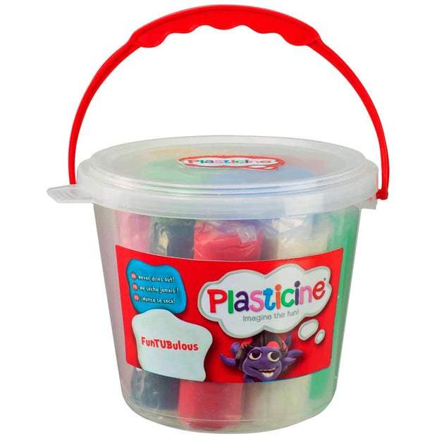 A timeless classic that can be used in a huge variety of ways! Get really creative with the Plasticine FunTubulous. Includes 8 bumper sticks of Plasticine and 4 moulds/cutters, which are stored in a cute plastic bucket with carry handle.