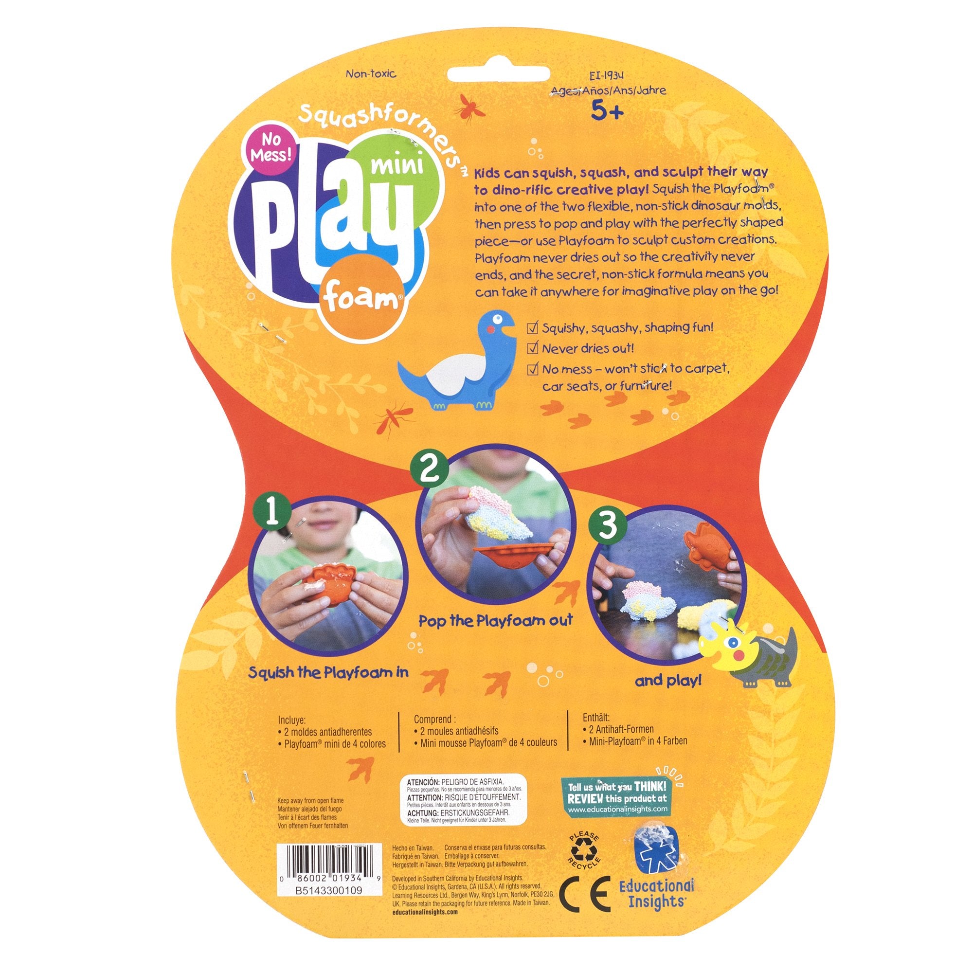 Playfoam Squashformers Dinosaurs Squish, squash, and sculpt fantastic Playfoam creations with Squashformers! Each set includes 4 pods of mini Playfoam and 2 shaped silicone molds Non-toxic Playfoam never dries out, so...