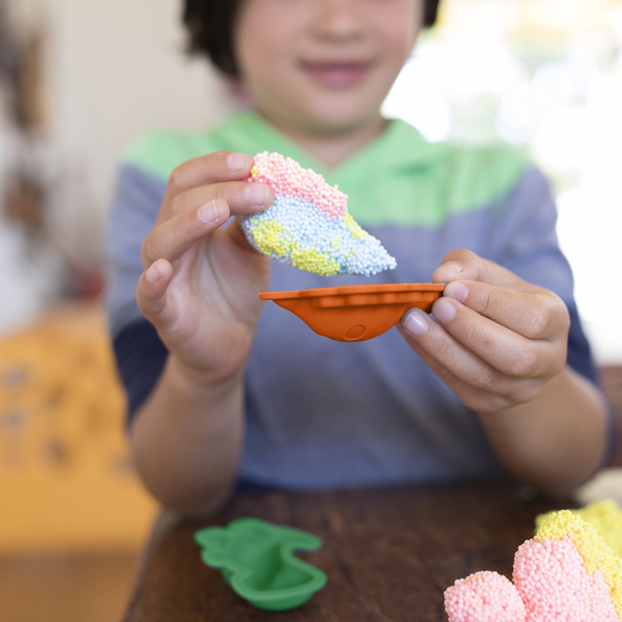 Each set includes 4 pods of mini Playfoam and 2 shaped silicone molds