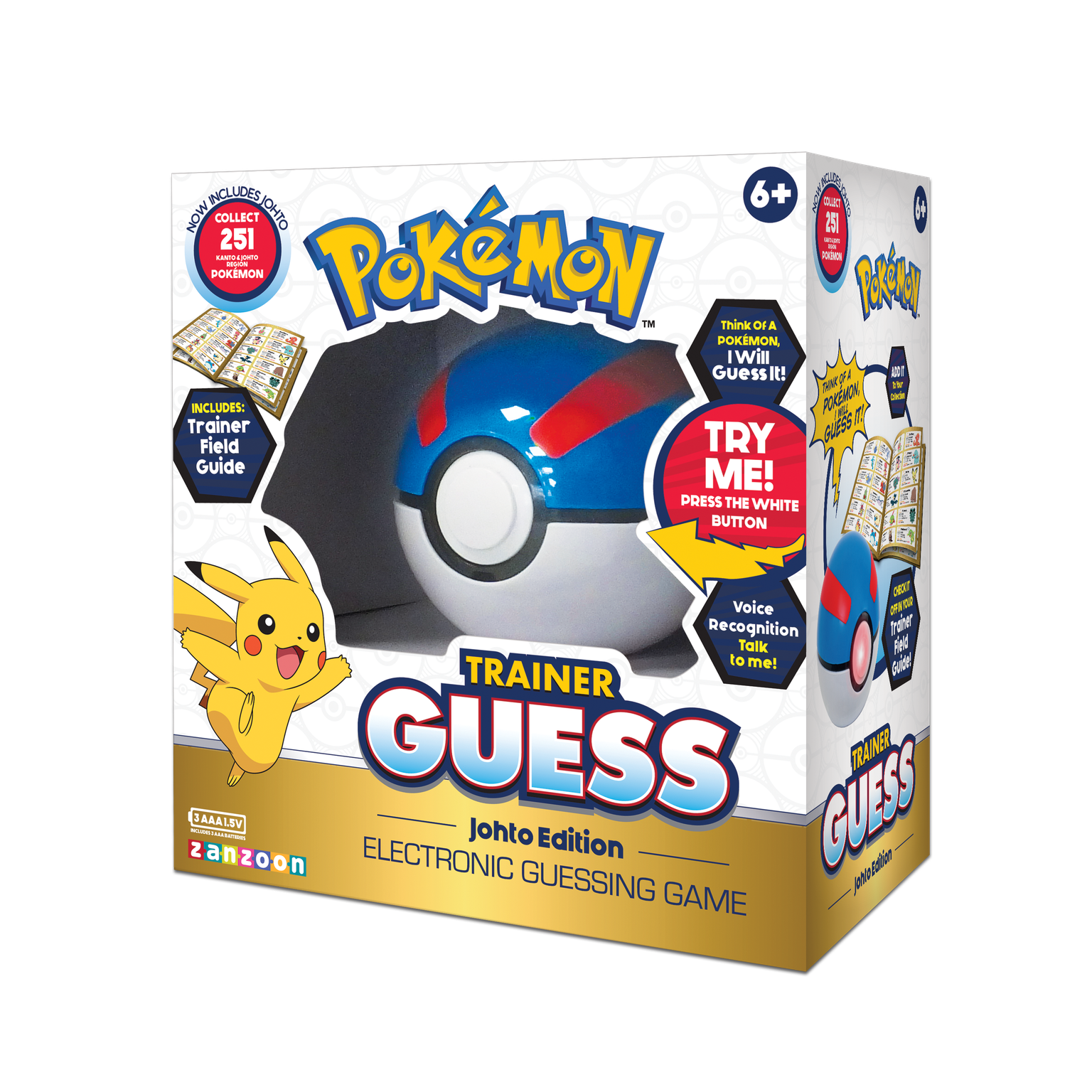 Just think of a Pokémon and answer the questions. Trainer Guess will figure out what Pokémon you are thinking of. Once a Pokémon is guessed it goes into your electric collection, with 151 Kanto Pokémon and 100 Johto region Pokémon to collect. Can you collect all 251? The enclosed Field Guide includes pictures of all the Pokémon, key details and names to help you in your quest!