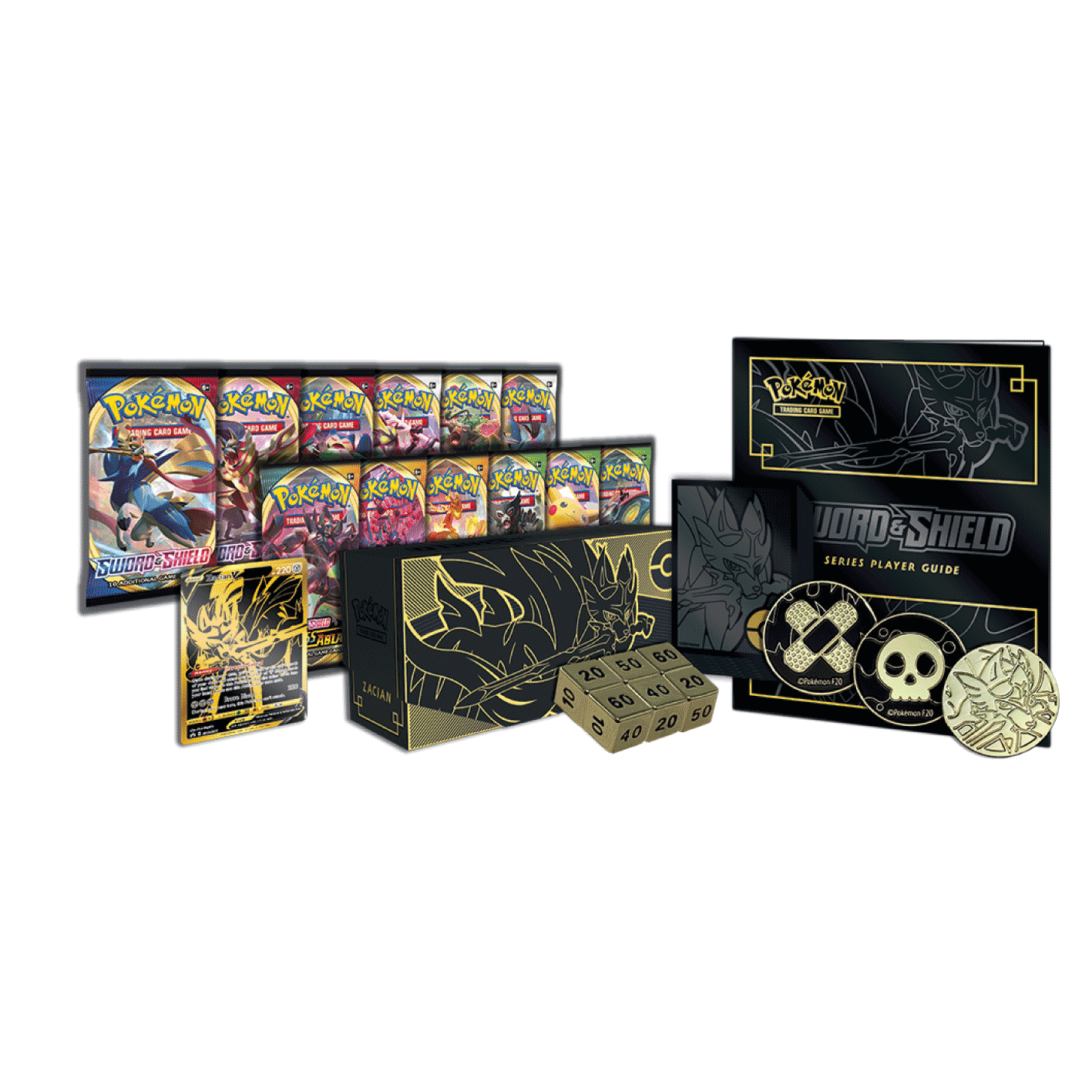 As a nod to the strength of these Legendary Metal-type Pokémon, this Elite Trainer Box Plus contains a variety of shining metal accessories. Look for a metal coin featuring either Zacian or Zamazenta, six metal damage-counter dice, and a set of metal condition markers. Not only that, but the set includes a Pokémon TCG: Sword & Shield Series player's guide, a Pokémon TCG rules booklet, and a whopping 12 Pokémon TCG booster packs from the Sword & Shield Series! Whichever Legendary Pokémon you choose, this Pokémon TCG: Sword & Shield Elite Trainer Box Plus will truly enhance your collection.