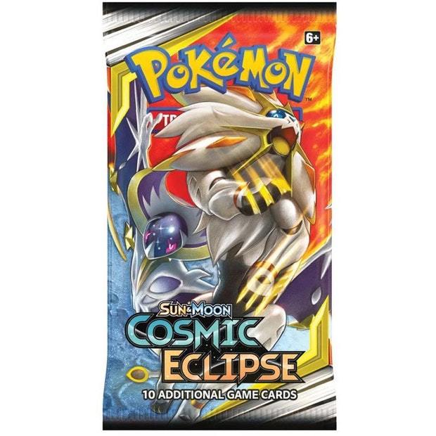At the apex of the Sun & Moon Series, the Pokémon TCG: Sun & Moon—Cosmic Eclipse expansion boosts the connection of Pokémon and Trainers, and it launches TAG TEAM combinations to new levels! Jump into battle with Charizard & Braixen-GX, Venusaur & Snivy-GX, Blastoise & Piplup-GX, and Solgaleo & Lunala-GX, along with the triple TAG TEAM of Arceus & Dialga & Palkia-GX, plus many more! Feel the stellar power of Pokémon with the Sun & Moon—Cosmic Eclipse expansion!