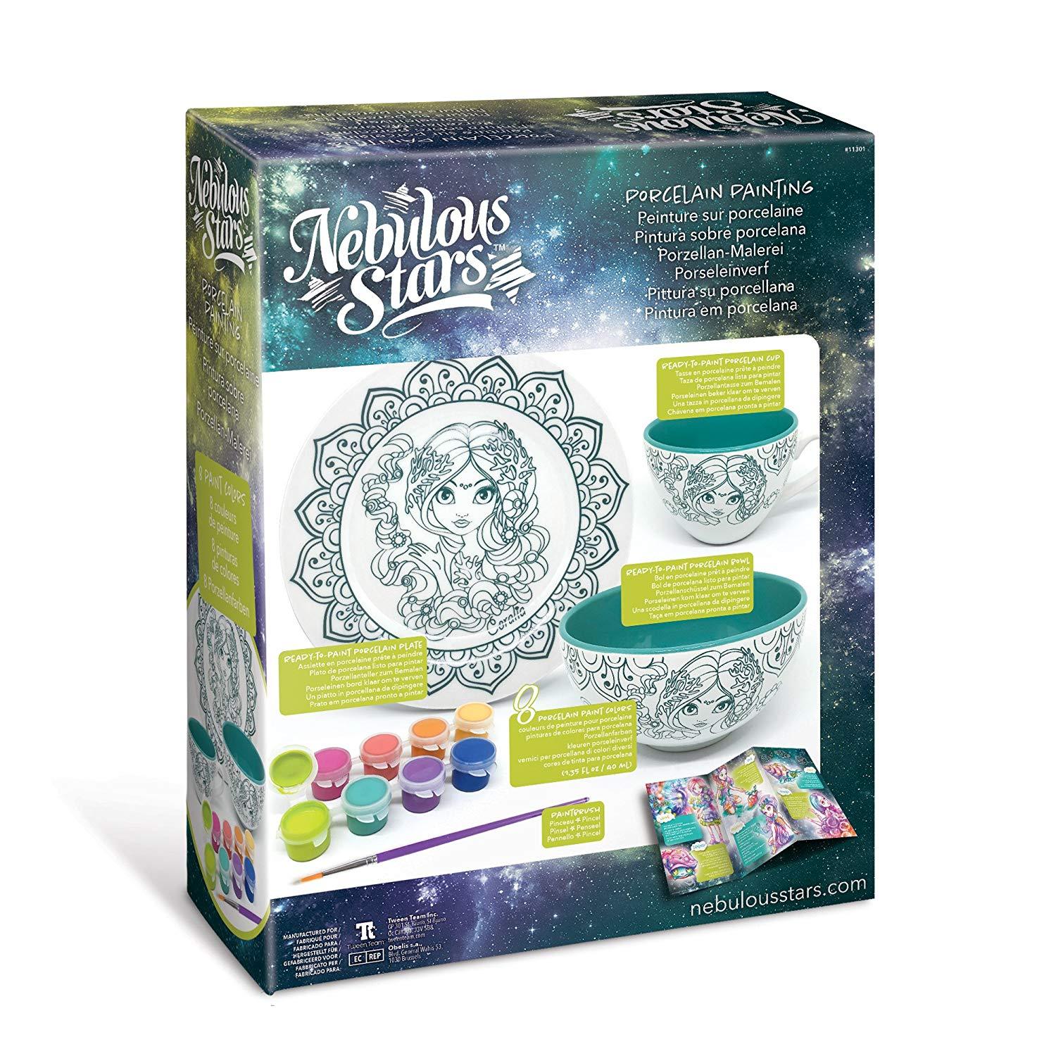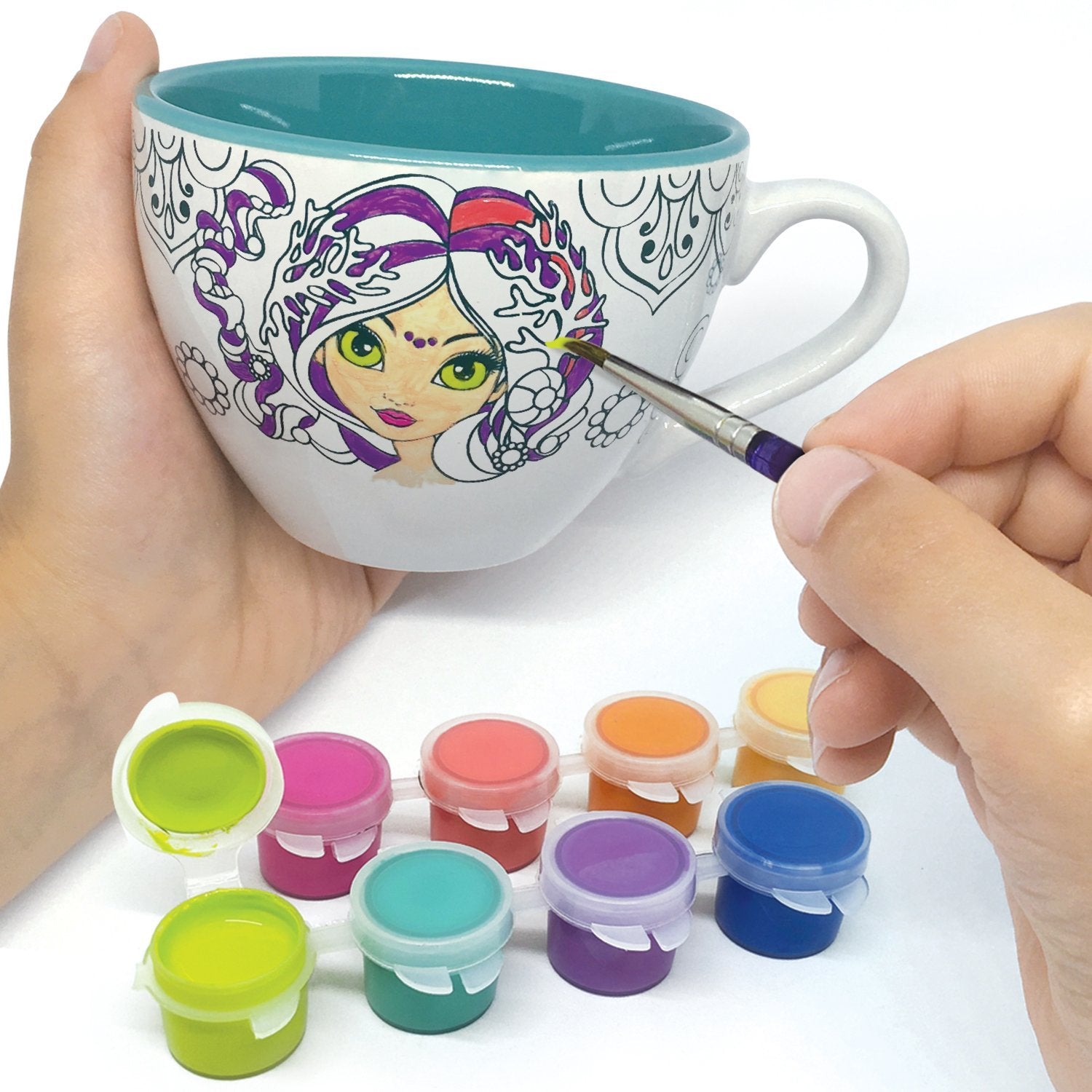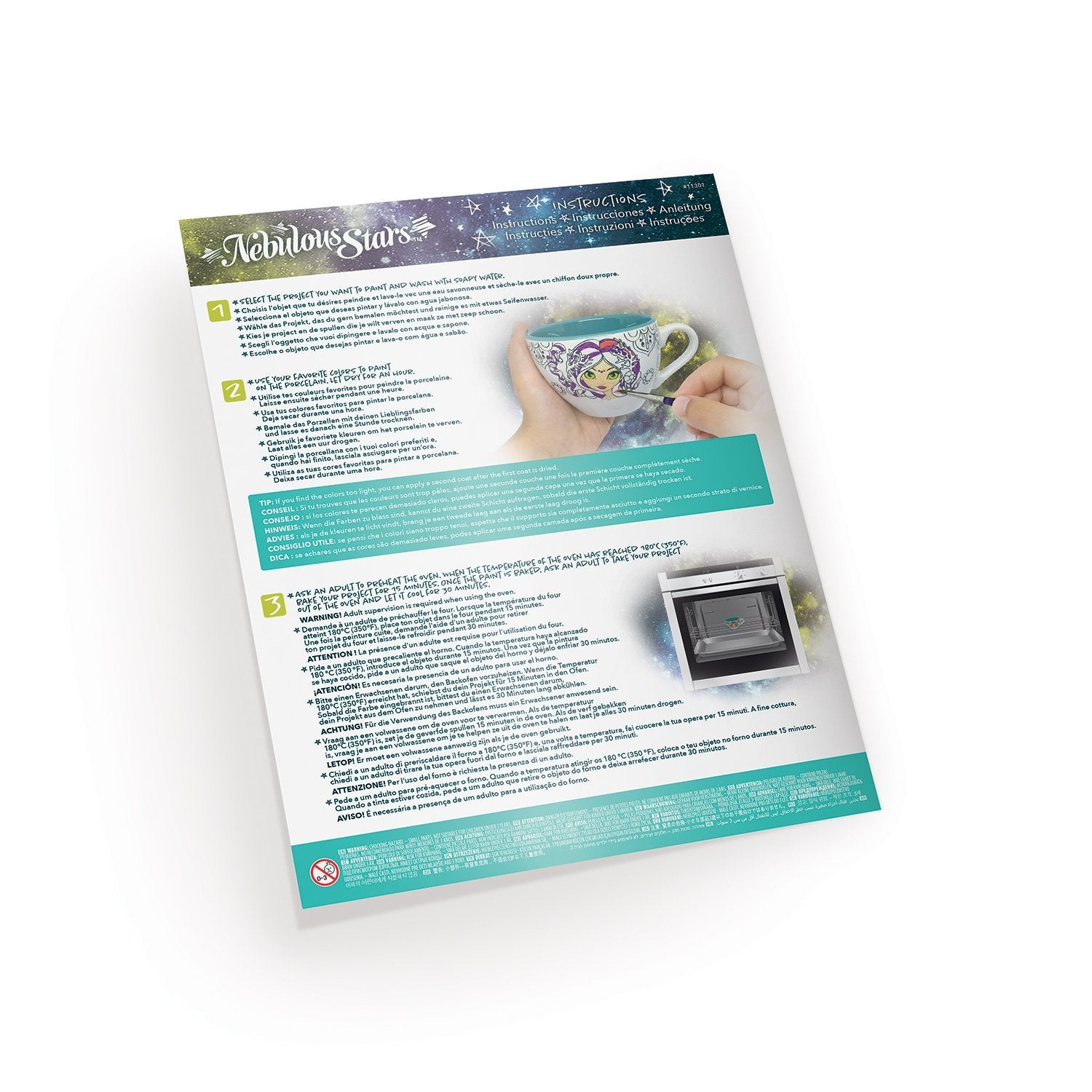 8 porcelain paint colors Ready-to-paint porcelain plate, bowl, cup are included Paintbrush and color instruction included Coraline story pamphlet in included Ages 7+