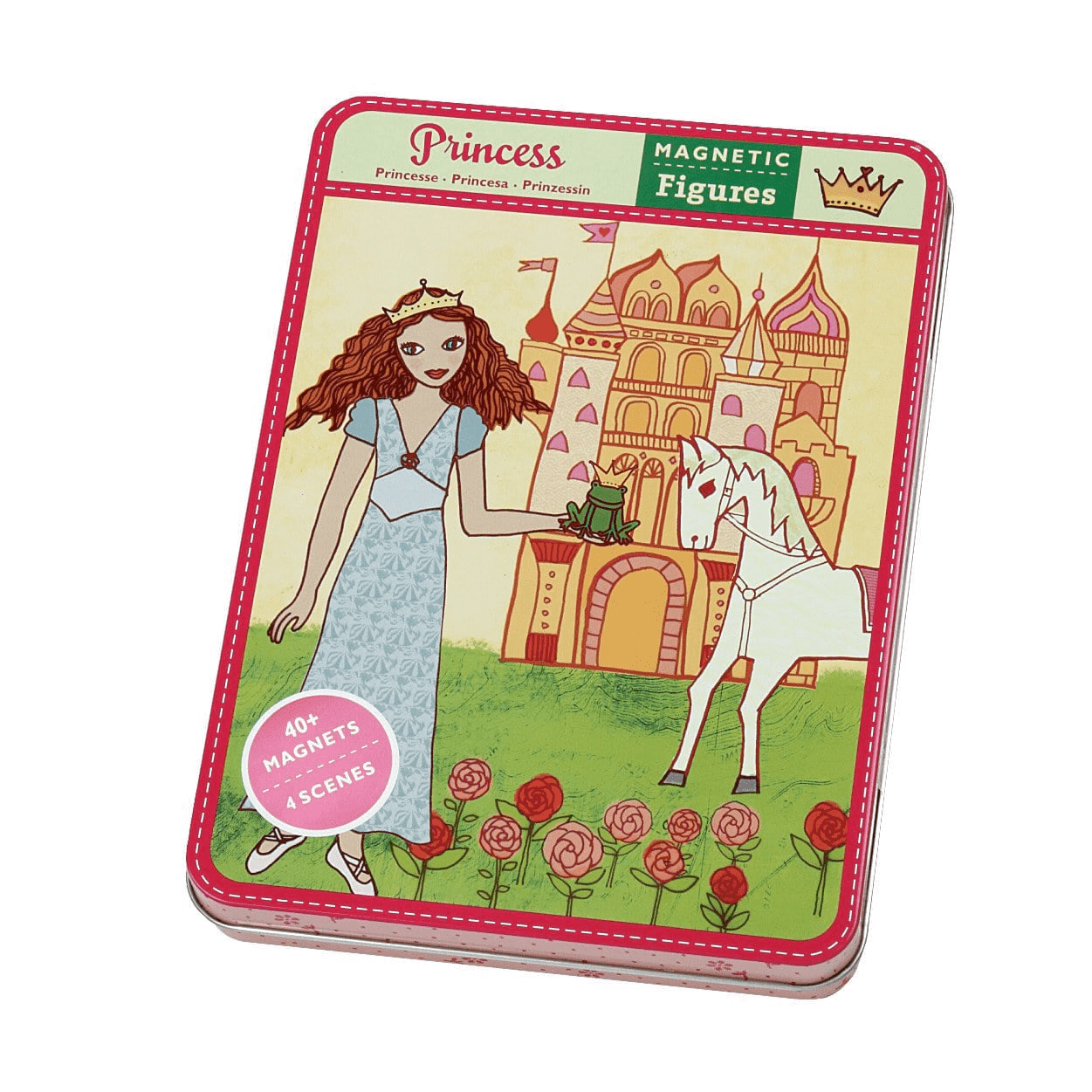 This magnetic princess doll comes with two different castles, two white steeds, and lots of clothing and accessories. Enter a fairytale realm by sunny day or starlit night. Knight in shining armor not included!