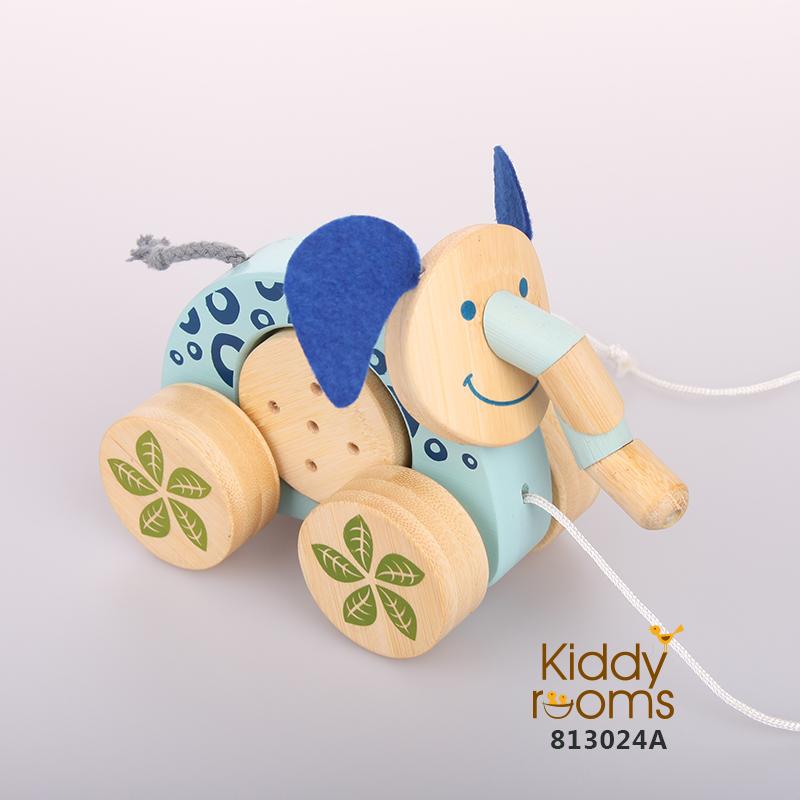 Pull-along Jingle Roller Elephant Smooth bamboo rolling wheels, bendable tails and head, and tummy will jingle while rolling. Hours of imaginative play and durable to withstand years to come. Packaging dimensions: 22...
