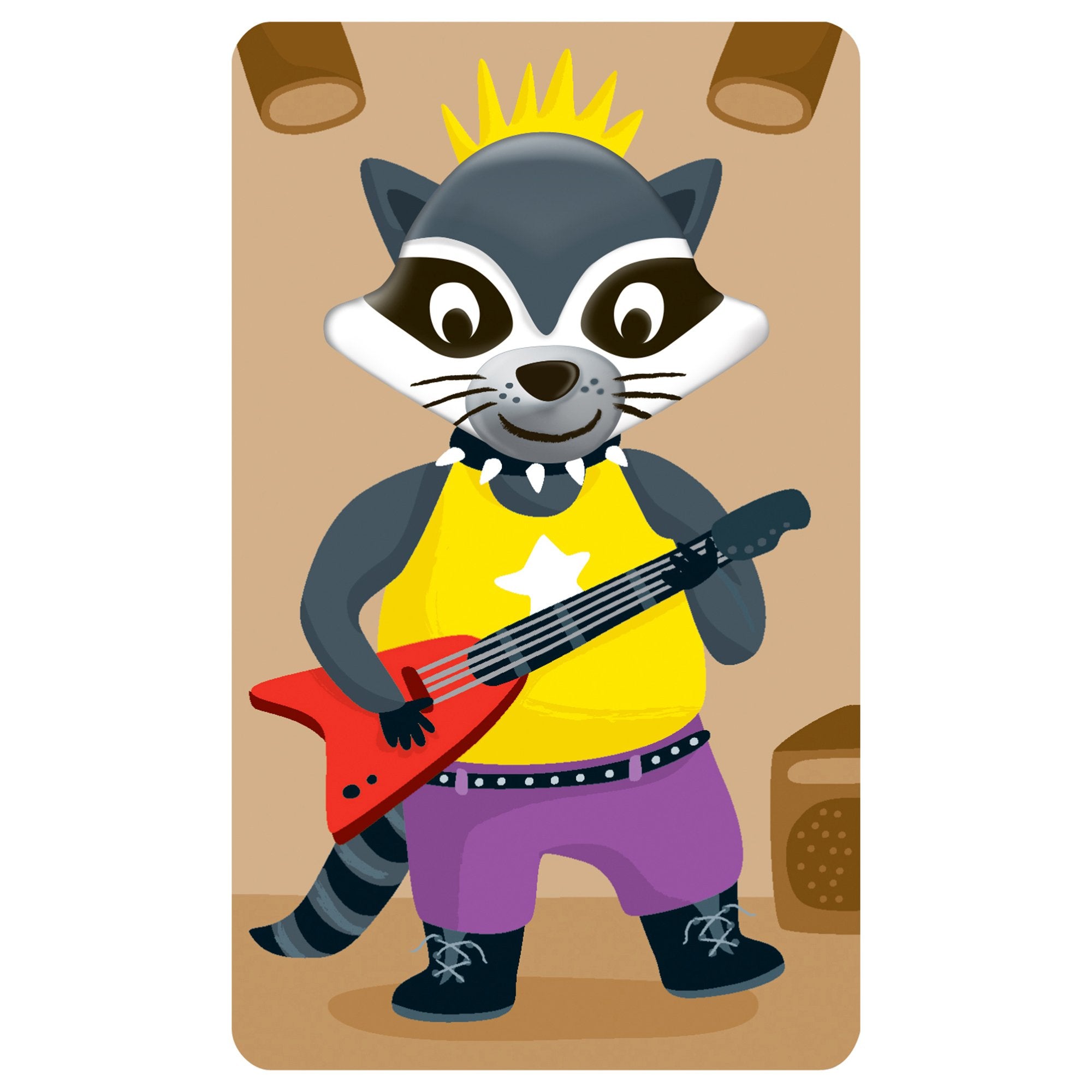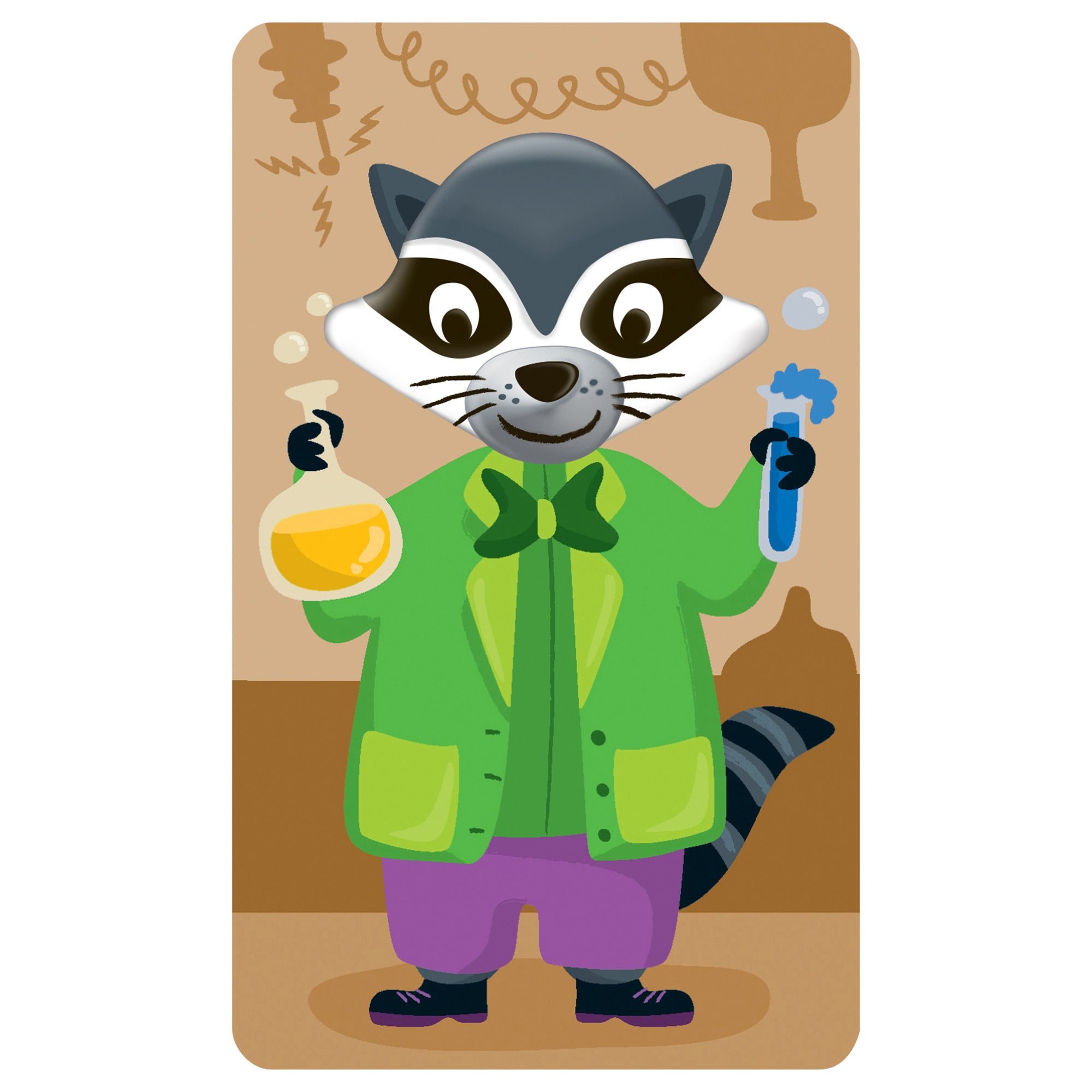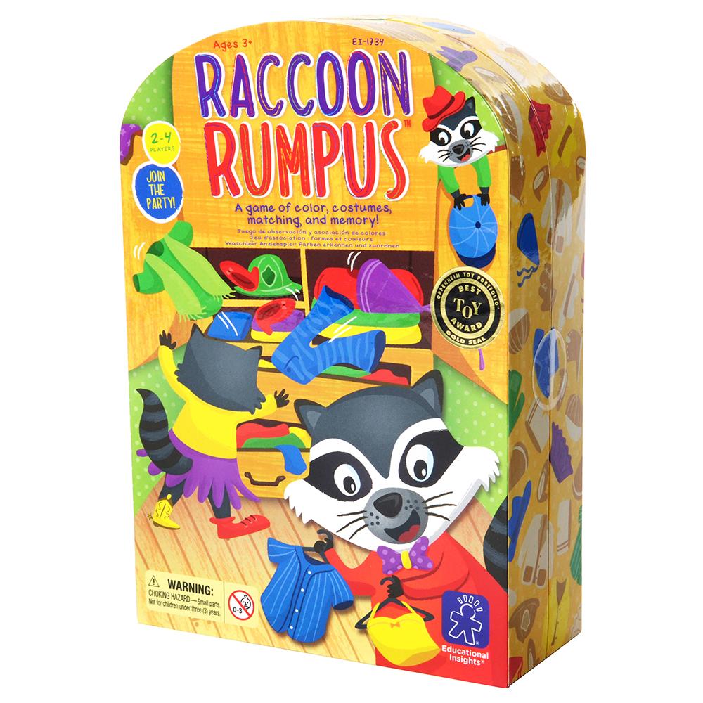 Includes 4 raccoon cards, 20 costume cards, jumbo color die, jumbo costume die, and multilingual instruction guide
