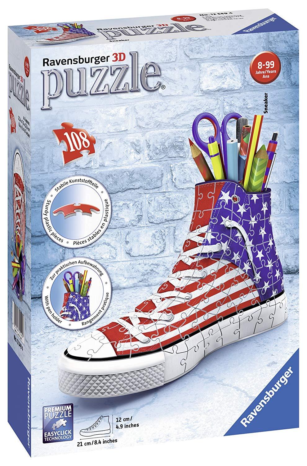 Sneakers are a must! Not just as a trendy shoe for any purpose, but also in the form of a Ravensburger 3D Storage Puzzle! The "American Style Sneaker" is a cool accessory for any desk or bedroom. If you are looking for a practical storage option for the miscellaneous items scattered around a children’s room, this 3D puzzle sneaker is just the thing.