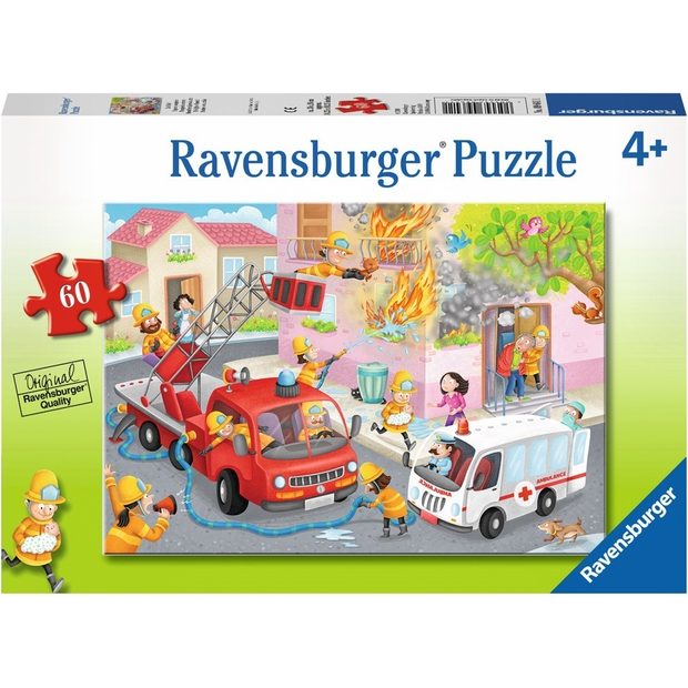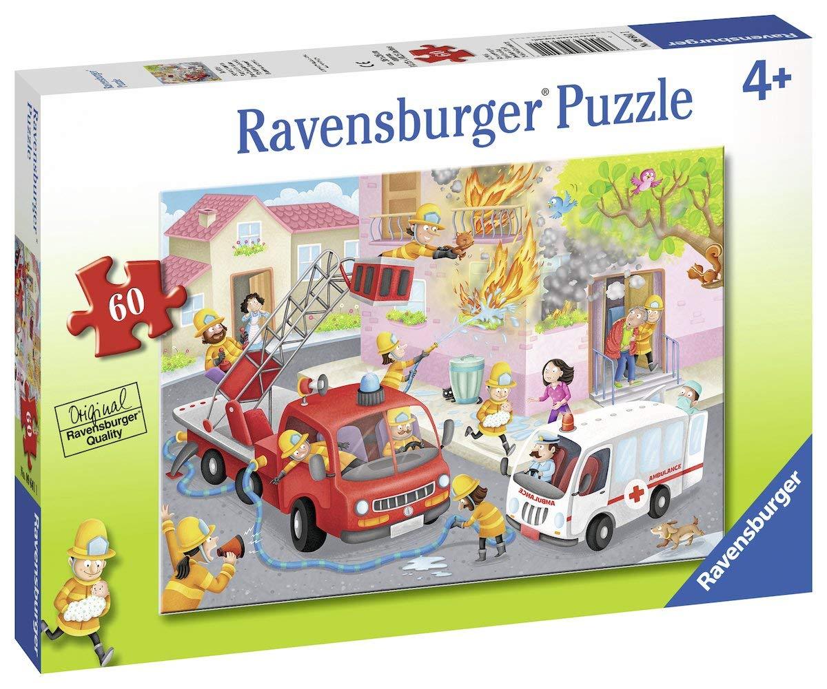 With a wide range of characters, images, and designs to choose from, we have something to challenge every young puzzler, ages four and up. Assemble 60 durable pieces to reveal the firefighters in action, battling a blaze from their bright red firetruck. With sturdy pieces that are easy to hold and manipulate, but strategically designed to offer a bit more of a challenge, little ones become puzzling pros. A completed Ravensburger 60 piece puzzle measures slightly larger than a piece of legal paper and features strategically selected imagery for a perfect unplugged challenge at home or on the go.