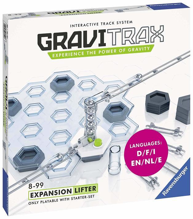 The lifter expansion set takes your marble run experience to a whole new level with over 25 additional elements. Once the marble reaches the bottom, raise it up to 2 levels higher using the lifter accessory: a button-operated elevator. Experiment with additional tracks, height tiles, and one transparent level. Combine with the GraviTrax starter set and test your skills to see how long you can keep the marbles rolling.