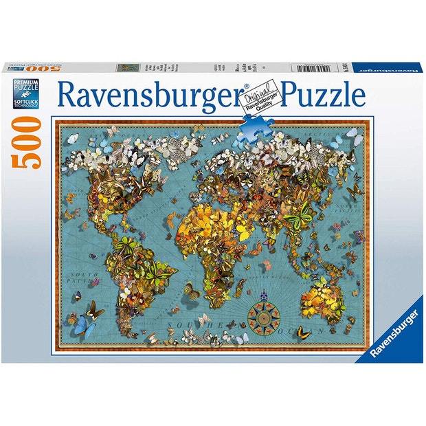 Ravensburger World of Butterflies Puzzle (500pc) Beautiful butterflies gather and settle, creating a unique version of the Earth's seven continents. A wonderfully colourful and contemporary version of this ever-popular puzzle subject....