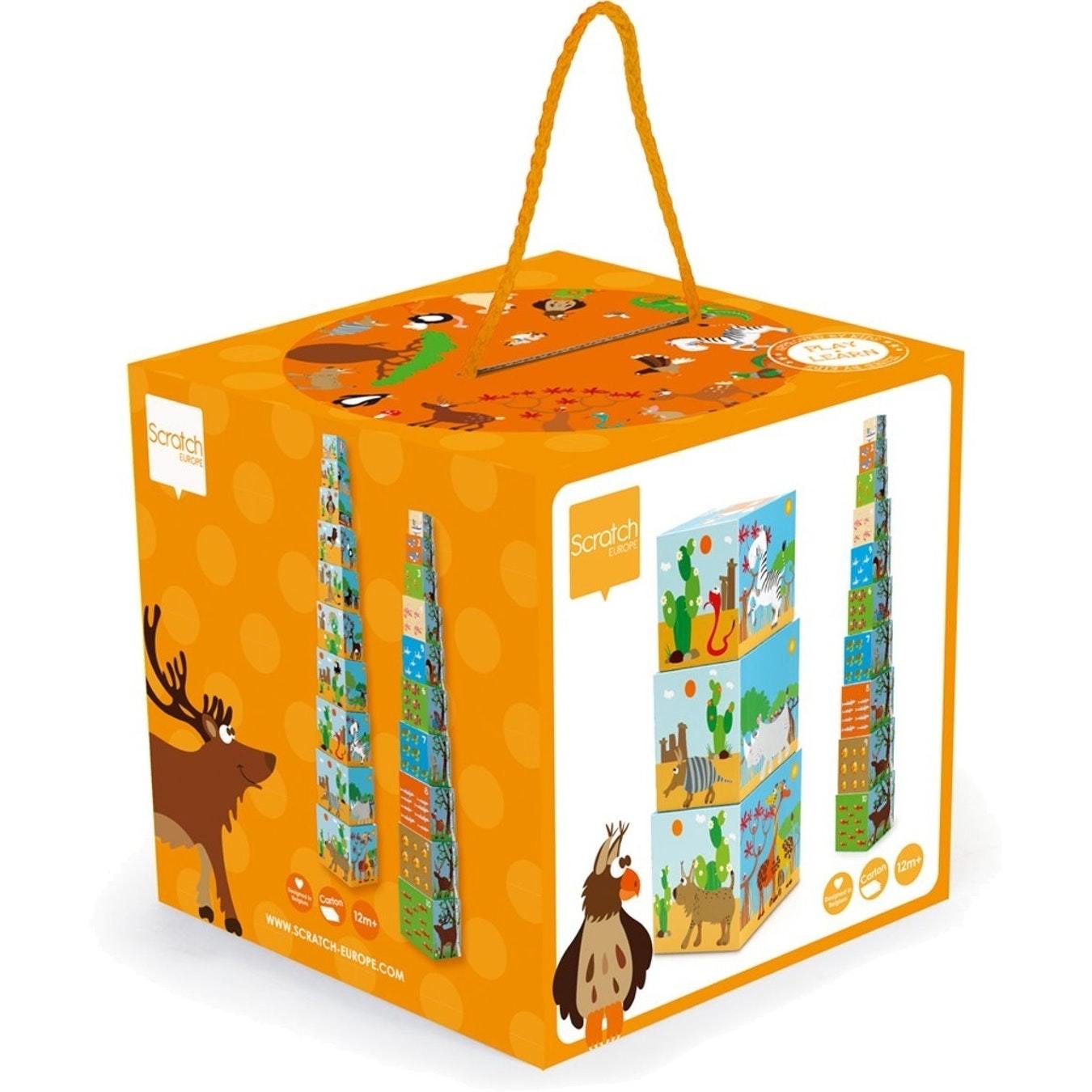 Fun, but also educational. Stack, puzzle, count, recognise animals and figures, and much more. Made of sturdy and durable cardboard.
