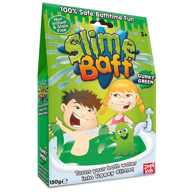 Make bath time fun with Slime Baff! Slime Baff is a powder that turns bath water into a gooey slime. When the fun is done simply turn the taps back on to dilute the slime. Slime Baff gives children a fun bath time, does not block drains and is kind on skin. Available in Gunky Green, Oozy Red and Goo Blue.