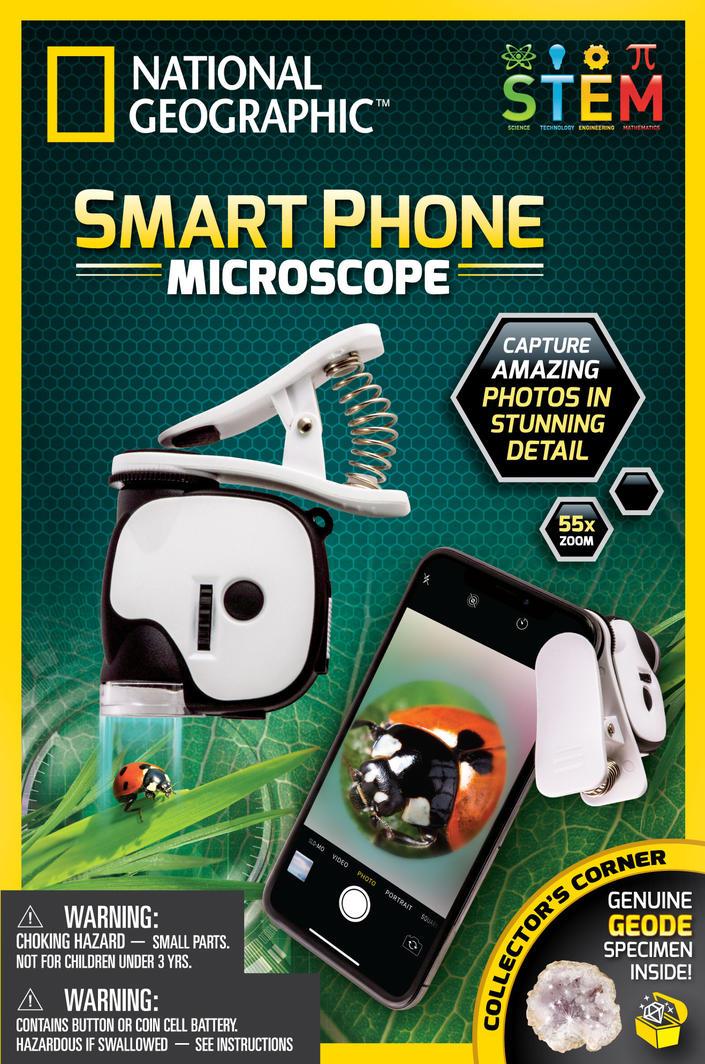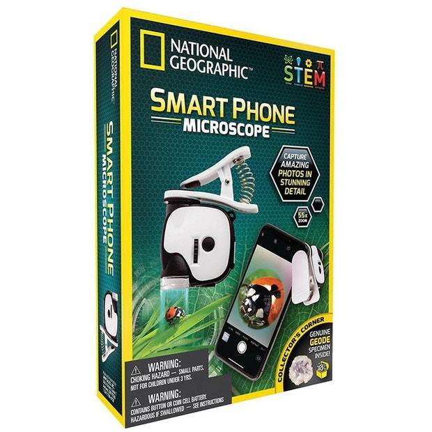 Turn any smart phone into a detailed microscope with National Geographic. This compact microscope comes with everything you need to get started (smart phone not included):