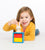 Is the rabbit looking through the round hole or through the star-shaped one? Is it standing on top of the yellow, the red or the blue block? The blocks can be combined in many different ways, more than you would imagine.