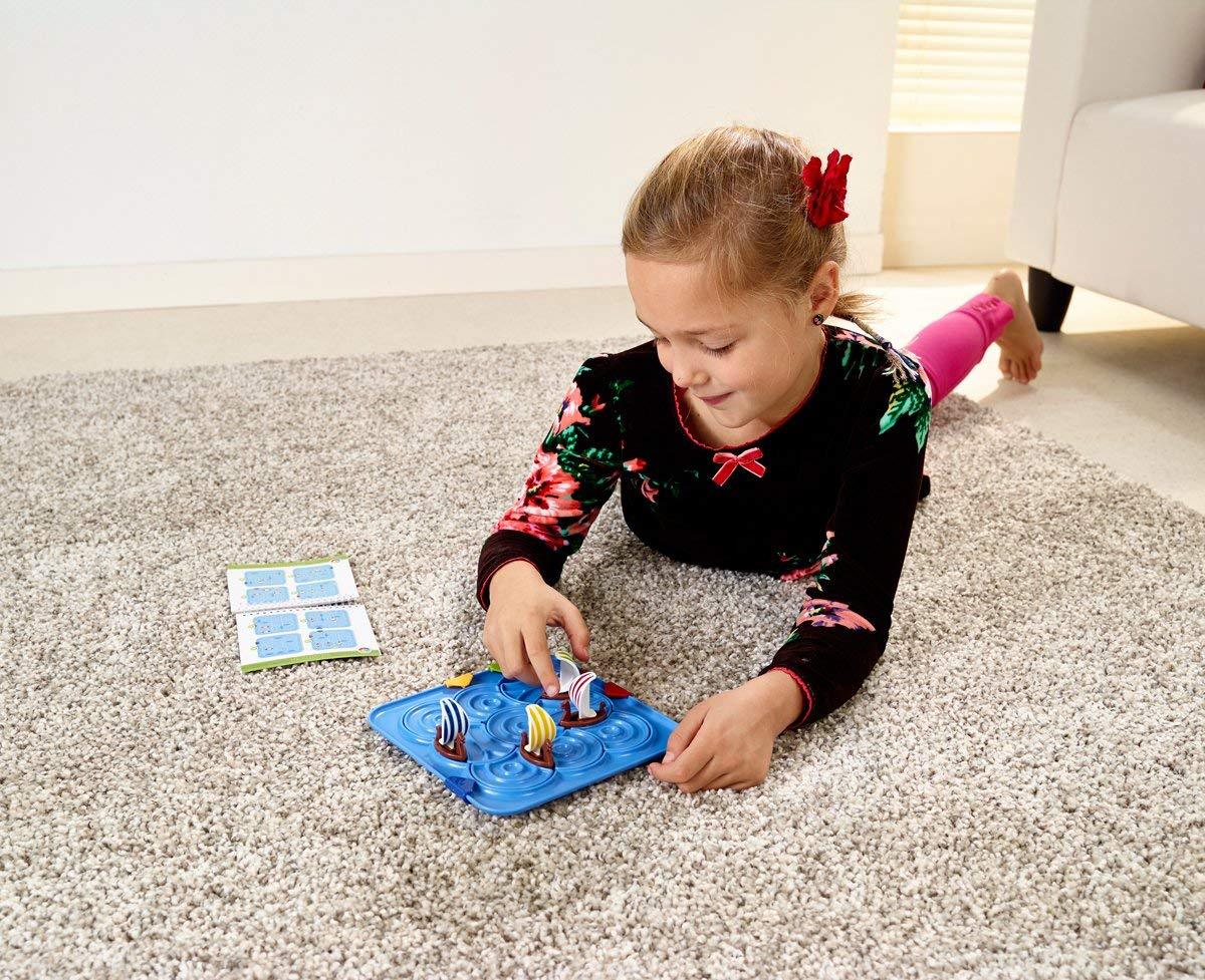- Features: Choose a challenge and place the ships and 9 puzzle pieces as indicated. Clip the colored arrows on the right place on the border. Move the ships towards their end position (i.e., the arrow of the same color as their sail), by rotating them through the sea pieces. Very original sequential movement puzzle. Fun to manipulate.